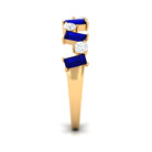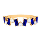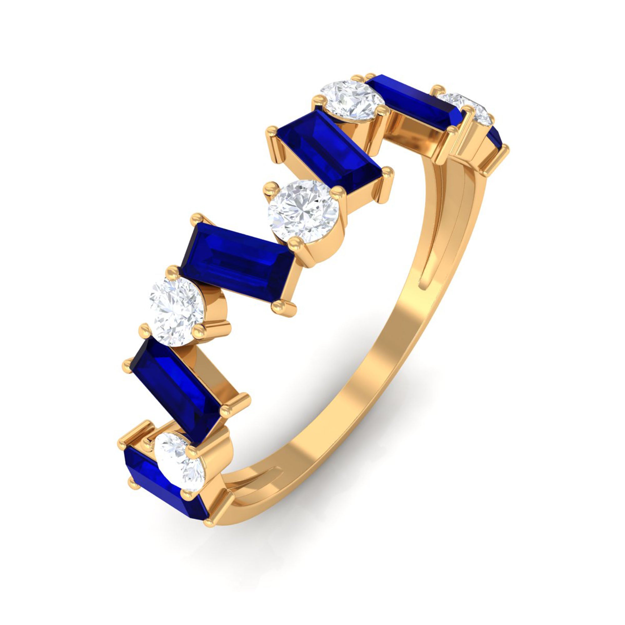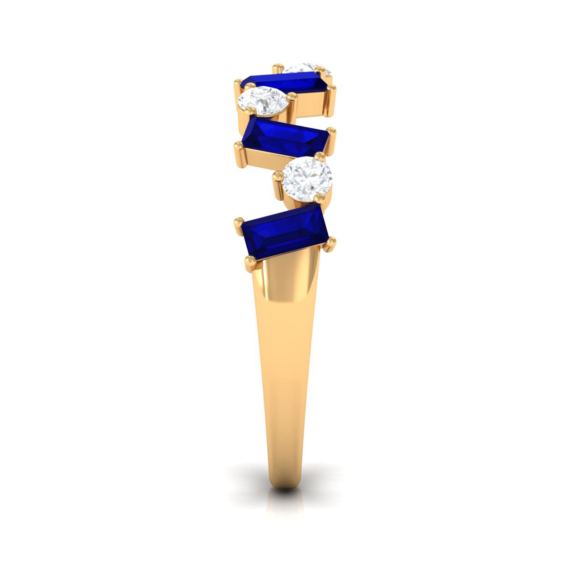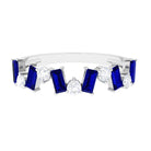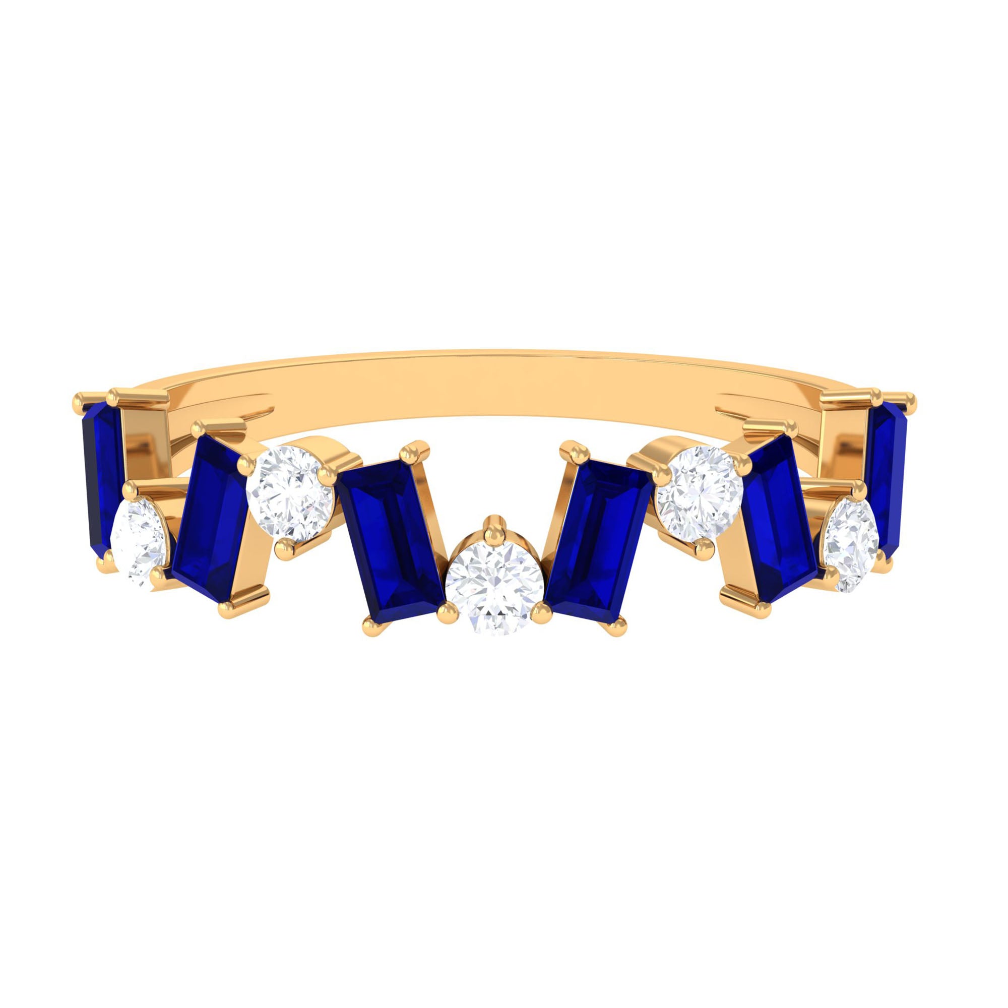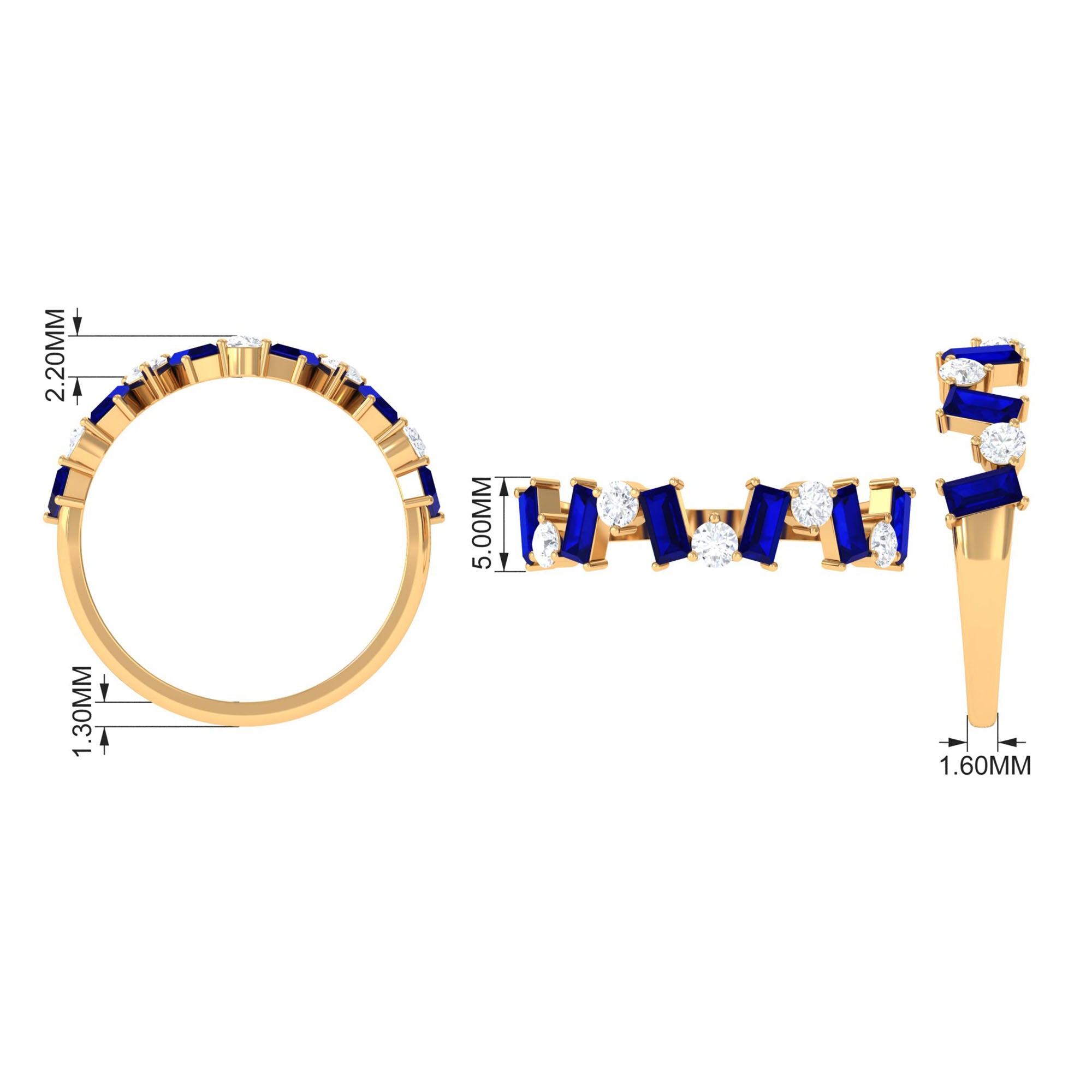 Create a memorable moment with our Designer Half Eternity Band. This exquisite uneven semi eternity ring features a stunning combination of baguette-cut blue sapphires and round-cut moissanite stones in a secure prong setting.•Present her with this exquisite band and let her experience the joy of eternal love and happiness.