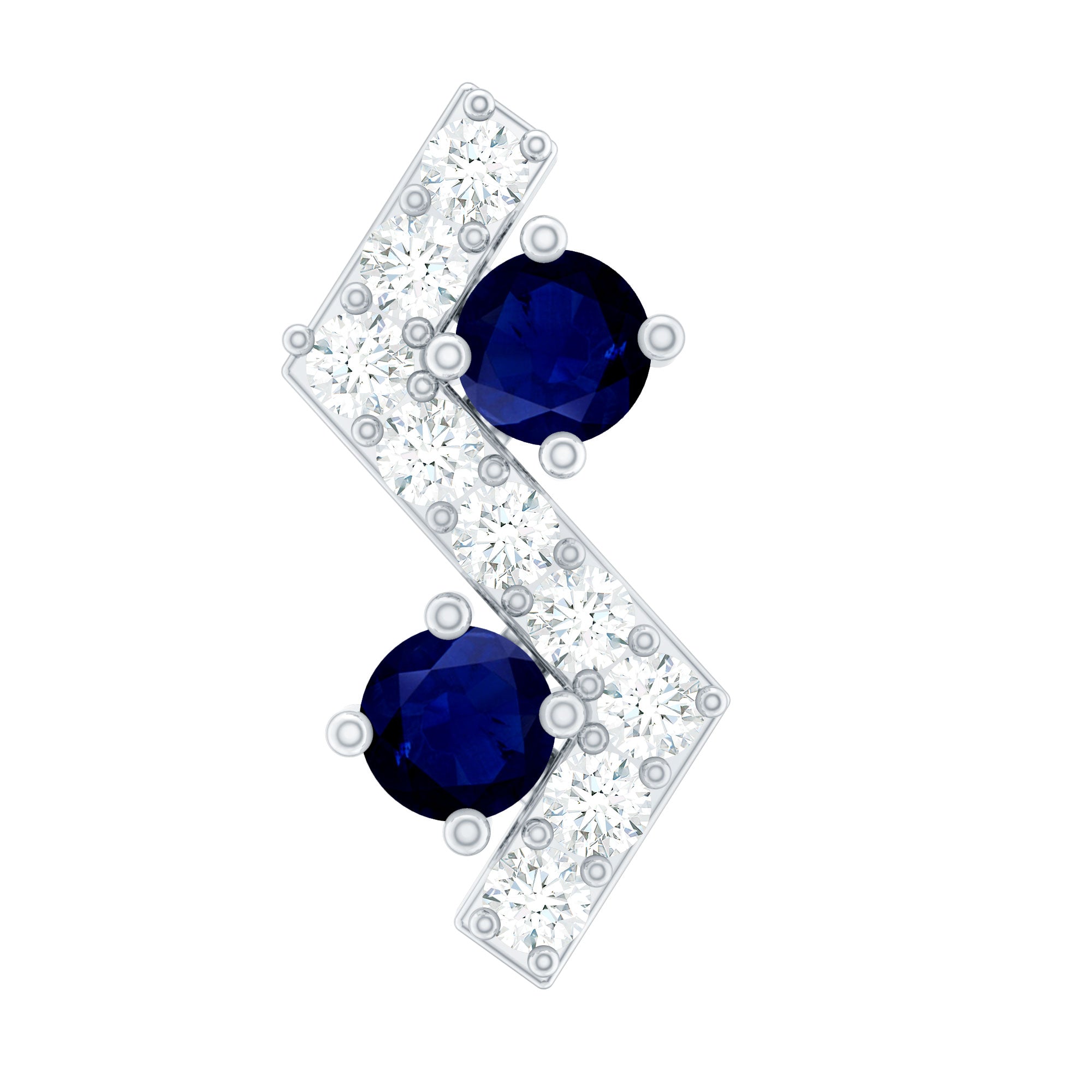 Blue Sapphire and Moissanite Zig Zag Helix Earring in Gold