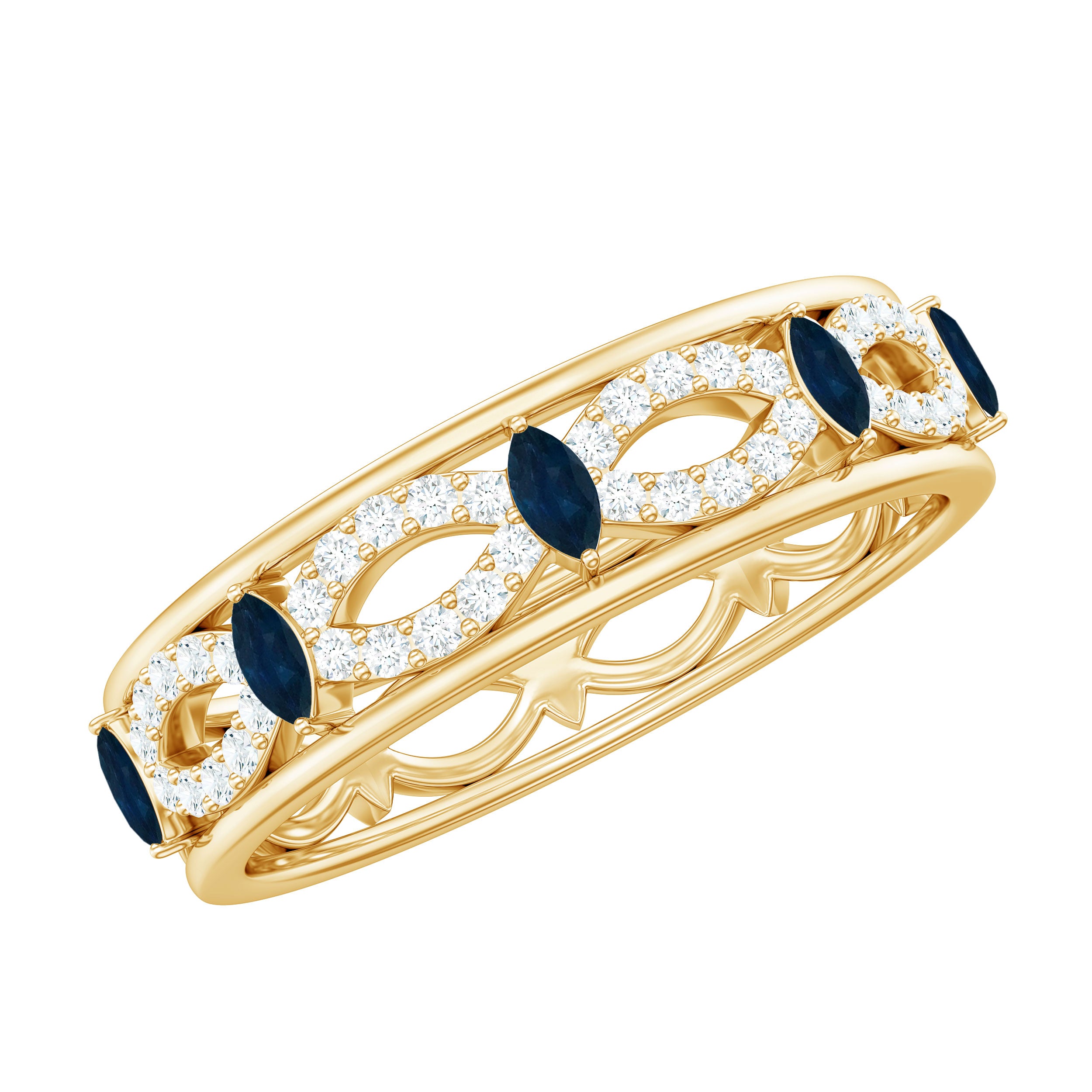 This stunning Band Ring is perfect for your special day, adorned with Marquise Shape Blue Sapphire in Prong Setting with Diamond is a true statement piece.