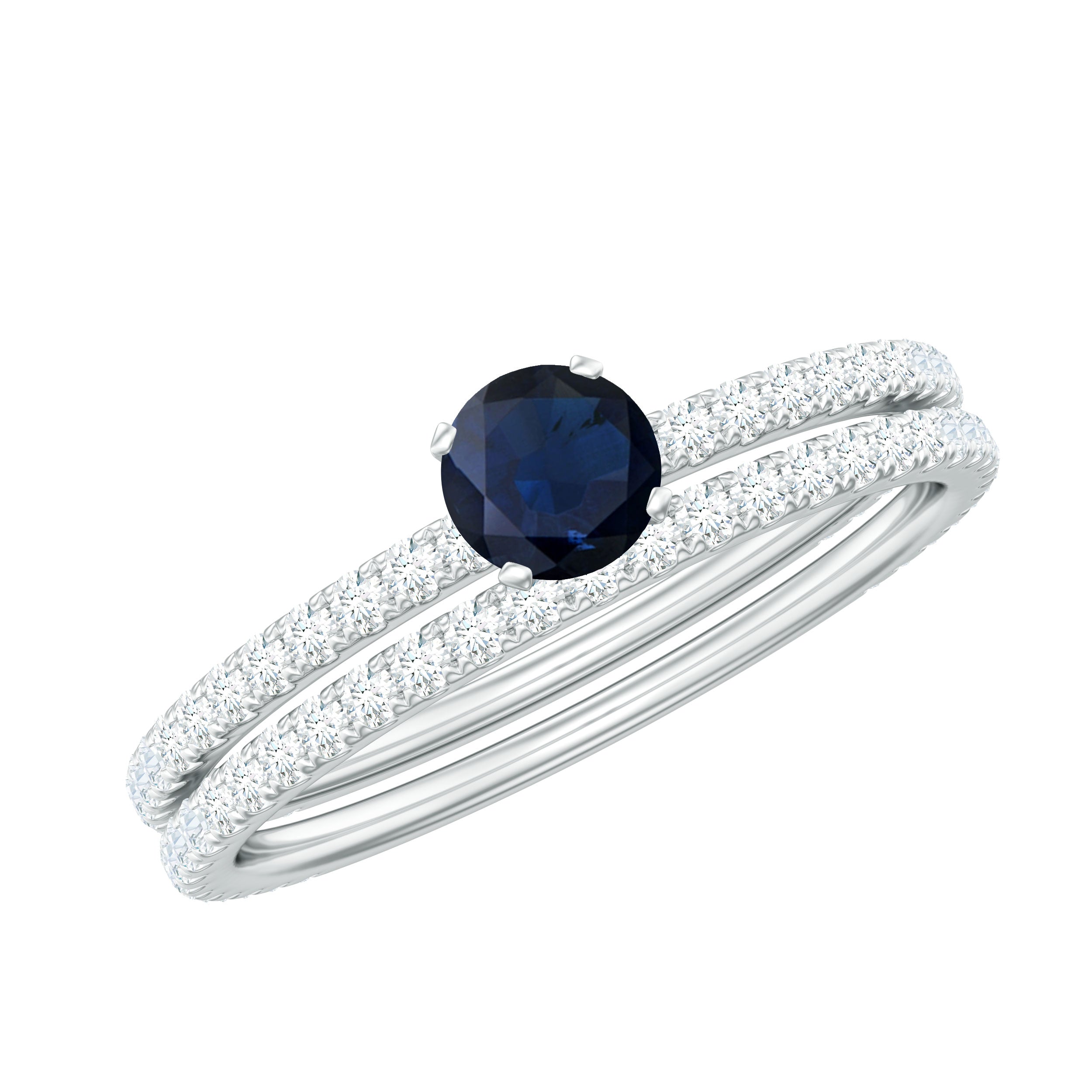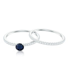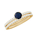 Blue Sapphire Solitaire and Diamond Simple Engagement Ring Set