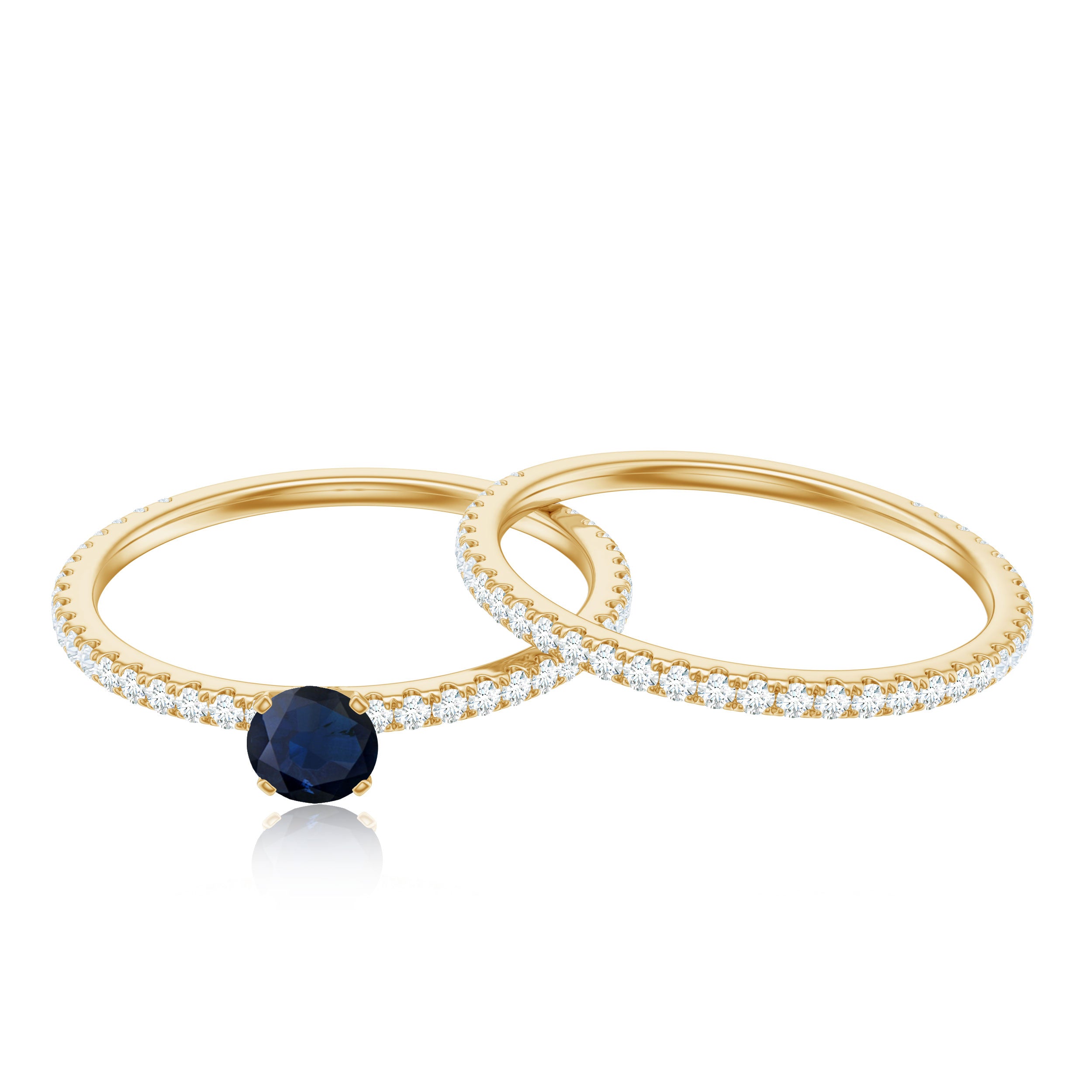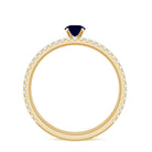 An Engagement Ring Set you just cant go wrong with, consists of a Blue Sapphire Engagement Ring adorned with a Round Shape Blue Sapphire Solitaire while Round Shape Diamond adorns its shank in pave setting and a Diamond Eternity Band bejeweled with Round Shape Diamond in pave setting. Propose her with this Simple Ring Set crafted in Solid Gold and just wait to see the priceless smile on her face.