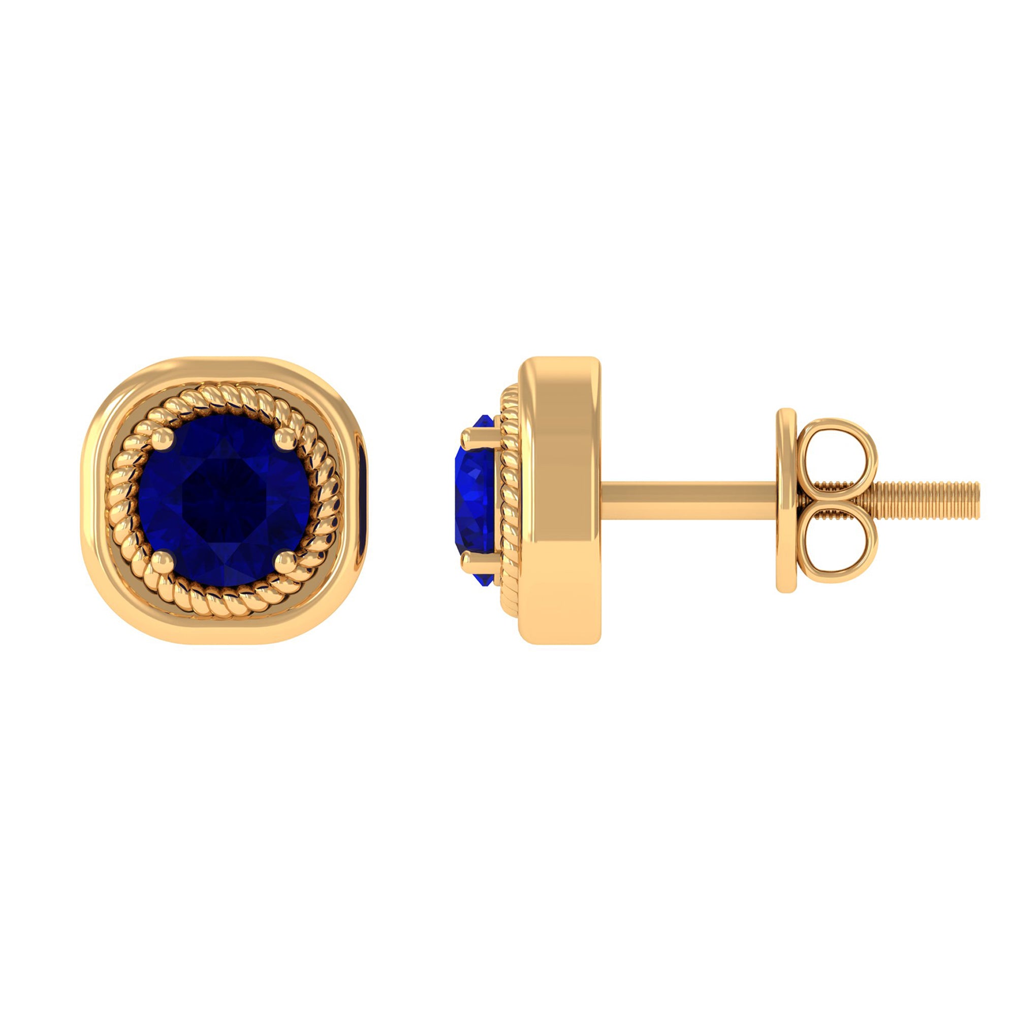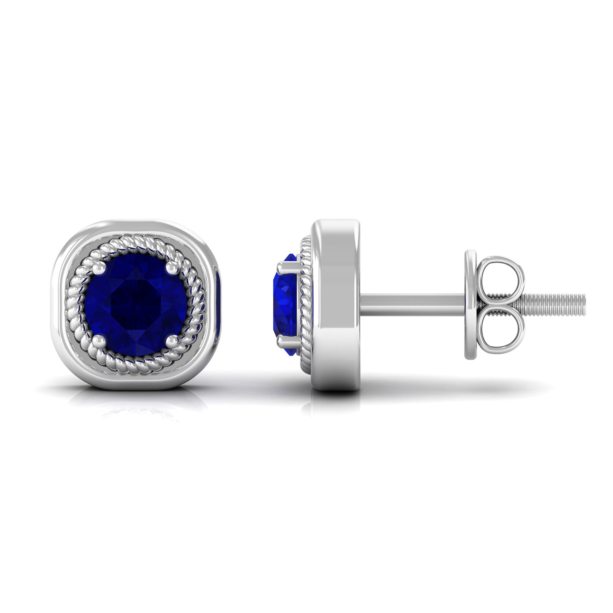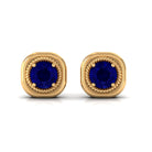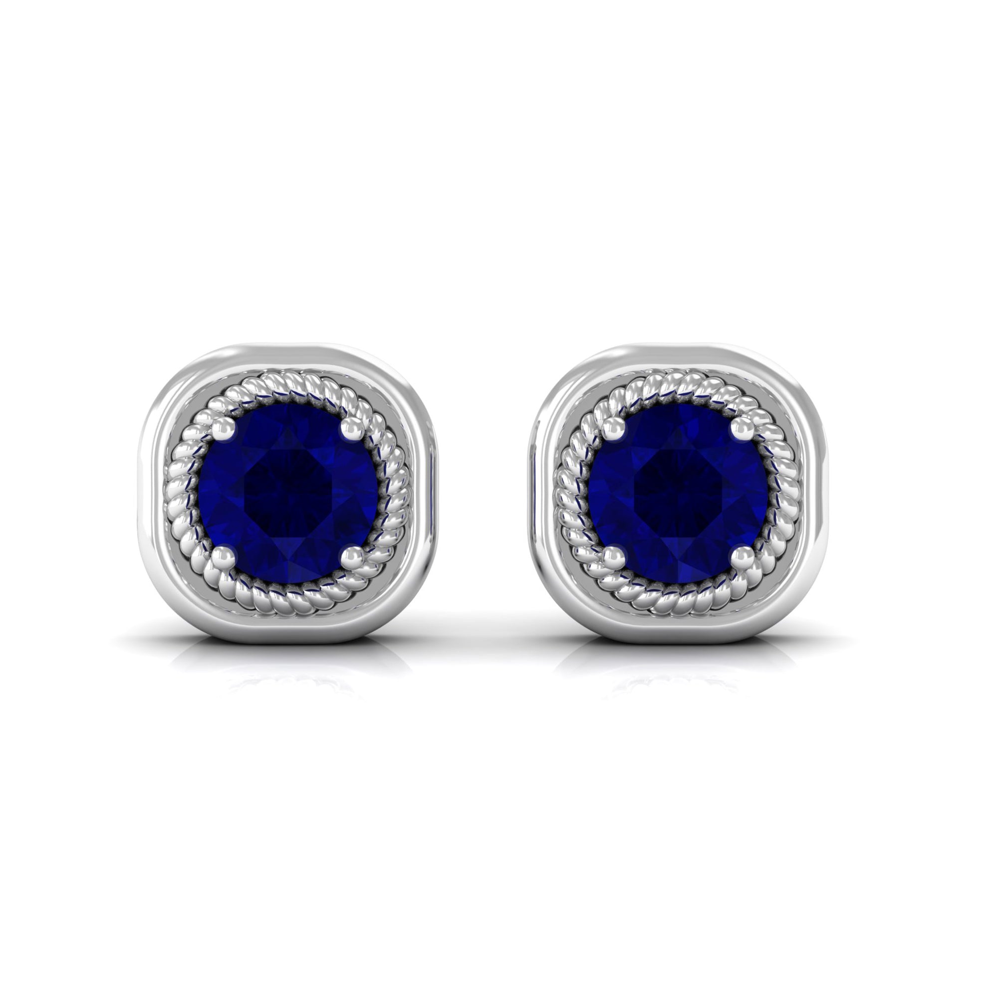 Blue Sapphire Solitaire Stud Earrings with Rope Frame Embellishment