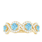 Representing two lives walking through life hand in hand, this Braided Ring creates a constant reminder of an unbreakable connection. This Half Eternity Ring features Round Shape Aquamarine gemstones set in Prong Setting highlighted by Diamond gemstones studded over the braided design. It would be a perfect Anniversary gift for your beloved wife and will be cherished by her for lifetime.