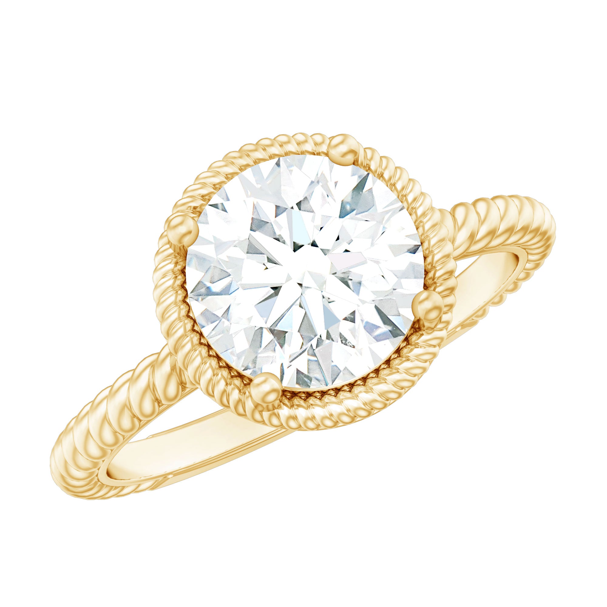 Bold brilliance meets timeless texture in this stunning Moissanite Solitaire Ring, a piece designed to celebrate life’s most meaningful moments. At the heart of this Solitaire Engagement Ring is a sparkling 8 MM round brilliant cut Moissanite, known for its D-VS1 quality, delivering exceptional fire, clarity, and brilliance. The solitaire design allows the center stone to take the spotlight, held securely in prong setting. What sets this ring apart is its beautiful twisted rope frame and band. The detailed texture adds a unique and elegant touch, giving the 2 Carat Moissanite Ring a vintage-inspired yet modern feel. The rope detailing flows around half of the band, offering visual interest from every angle while still feeling comfortable on the finger. This Round Cut Moissanite Engagement Ring is available in multiple ring sizes, metal colors, and metal types, allowing you to choose the perfect version to match your personal style. From the eye-catching sparkle to the carefully crafted rope detailing, every part of this Round Engagement Ring is made to feel special. Beautifully packaged and ready to gift or cherish, this ring is a lasting symbol of love, strength, and elegance.