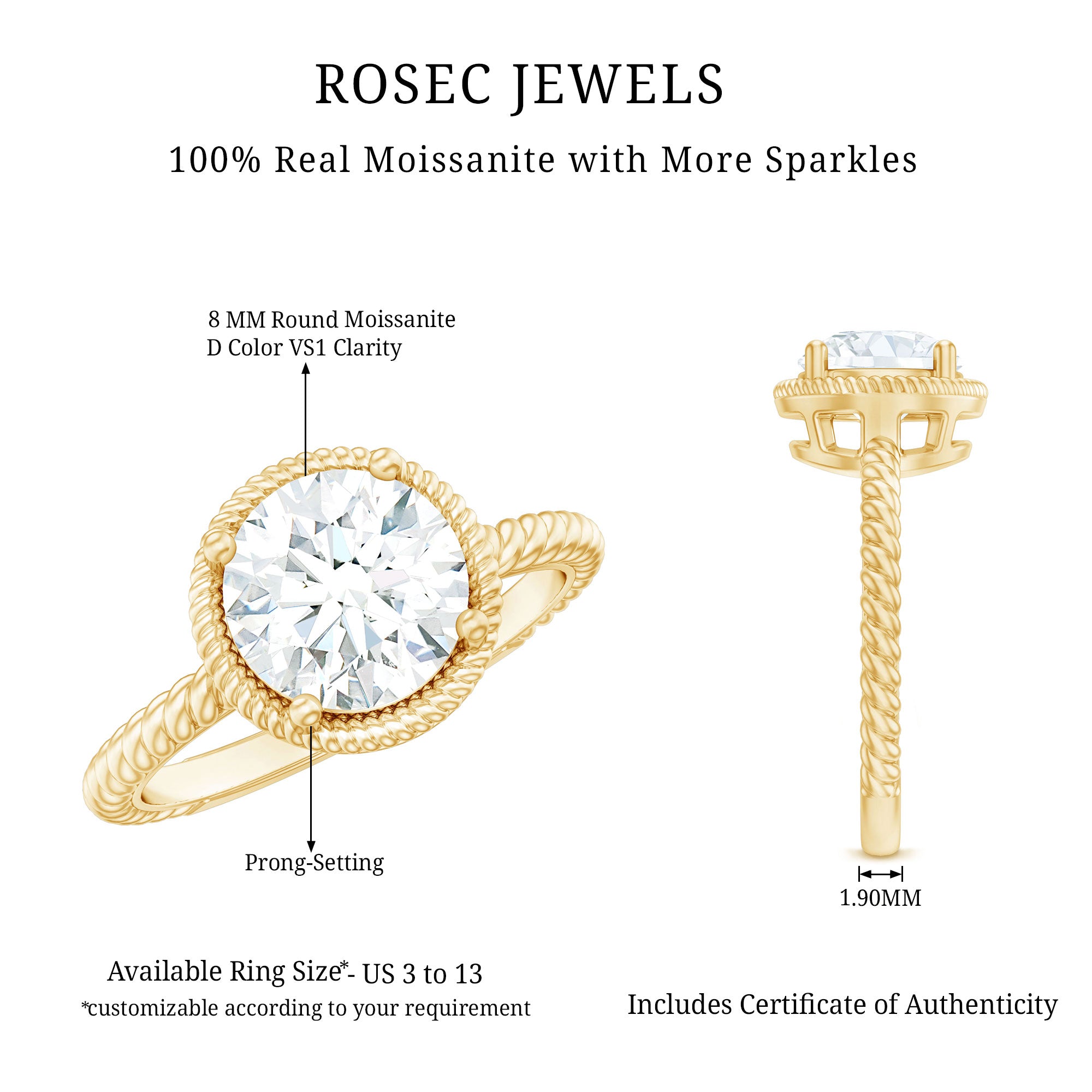 Brilliant Cut 8 MM Moissanite Rope Band Engagement Ring