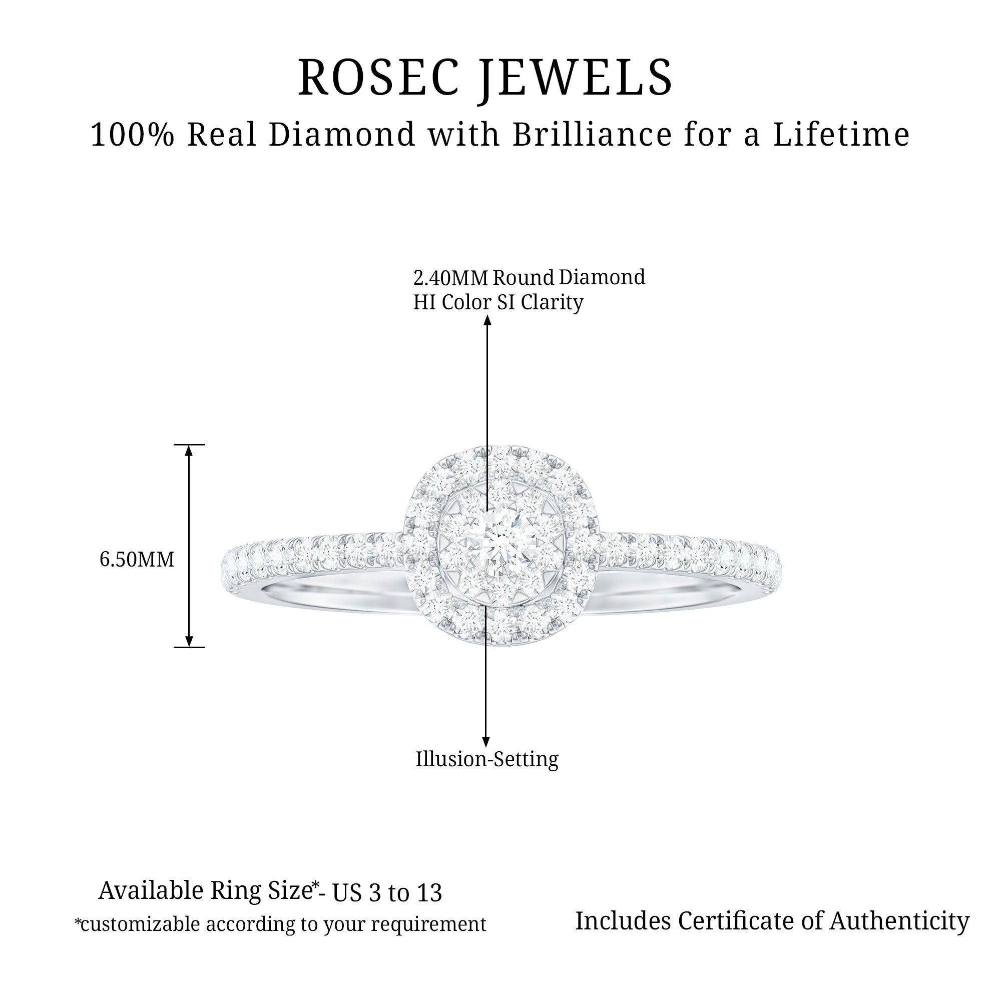 Appreciating timeless elegance and simplicity, this Diamond Engagement Ring offers a sense of enduring sophistication. With the sparkle of brilliance and fire, it is the perfect symbol of your love. A continuous and shimmering effect on the Classy Engagement Ring is elegant yet striking, which is perfect for those who appreciate classic and contemporary style. A meaningful and balanced look, this Illusion Diamond Engagement Ring blends timeless symbolism with modern elegance. It is adorned with Round Shape Diamond in Cluster, in the center attracting the attention. The Halo of Diamond Accent, along with the Side Stones, speaks volumes about style, capturing elegance. This elegant Classic Engagement Ring also meets the needs of a modern lifestyle. The beautiful and elegant design involves a high degree of craftsmanship. The classic aesthetic of this Timeless Engagement Ring pays attention to the subtle details that enhance its design. Epitomizing refined beauty and enduring style, it is a symbol of a committed relationship.