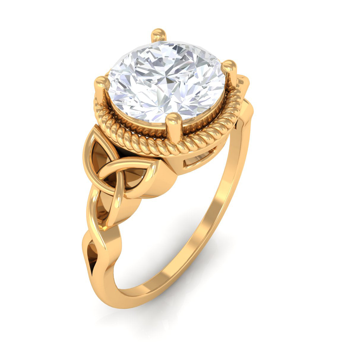 Looking for a Moissanite Engagement Ring that feels special, meaningful, and a little different from the usual? This Celtic Knot Engagement Ring might be just what you are after. At the center, it features a bright and brilliant 8 MM round Moissanite set in prong setting. With its D color and VS1 clarity, this stone is full of fire and shine. What makes this Round Engagement Ring stand out is the unique twisted rope frame around the stone. It gives the design a bold, textured look, something simple but still eye-catching. On the sides, the band has elegant Celtic knot designs, which are all about love, strength, and connection. These knots have no beginning or end, symbolizing forever, making this Solitaire Moissanite Ring a perfect fit for promises, proposals, or even just a meaningful gift to yourself. It is comfortable to wear and easy to style with both everyday outfits and special occasion looks. Whether you are someone who loves timeless details or you just want something with a little symbolic charm, this 2 Carat Moissanite Ring does both without trying too hard.