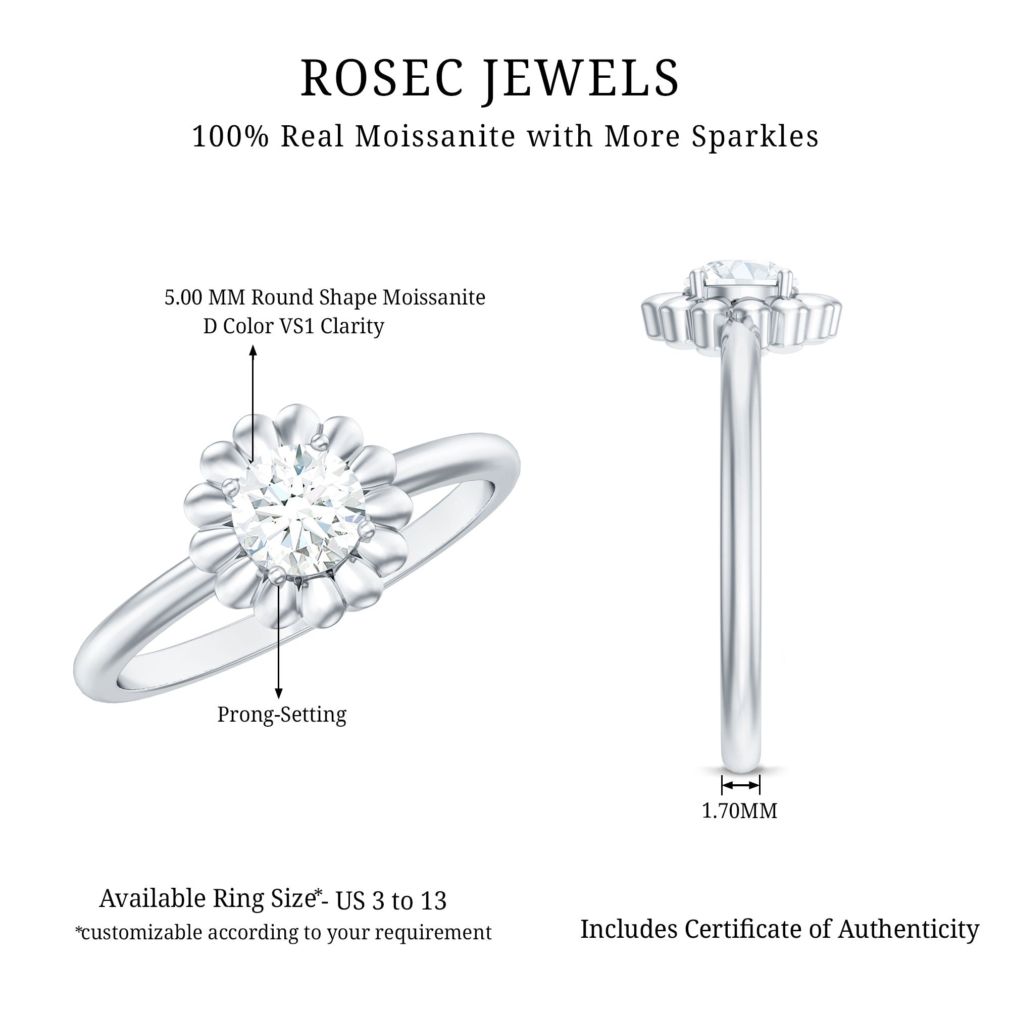 Make your loved one feel truly special with this Moissanite Promise Ring for Her that speaks from the heart. Inspired by nature’s beauty, this Flower Ring is a gentle reminder of love, hope, and new beginnings. At the center of it all is a sparkling 5 MM round cut moissanite, held in prong setting. Its bright shine stands out with every movement, making it the perfect choice for someone who loves a bit of extra sparkle. Surrounding the center stone are delicate petal like details, giving the Solitaire Moissanite Ring a flower inspired design. The petals gently wrap around the moissanite, adding a touch of romance and making the Floral Promise Ring feel both sweet and unique. It is a design that celebrates nature and love in the most beautiful way. Perfect for someone who wants a ring that is different from the usual styles, this piece offers a lovely mix of charm and elegance. Whether worn as a promise ring or simply as a favorite everyday piece, it brings a fresh, feminine feel to any look. Moissanite is a great choice for those who want lasting shine without the high cost of diamonds.
