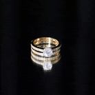 Celebrate your forever with this beautifully crafted Moissanite Bridal Ring Set, designed to capture the joy, love, and sparkle of your special day. At the heart of this set is a stunning 7 MM round moissanite engagement ring, surrounded by delicate side stones and a hidden halo beneath the center stone that adds a soft, glowing sparkle from every angle. The hidden halo is a subtle but special touch, adding depth and detail without overpowering the elegant design. Paired perfectly with the engagement ring is a matching moissanite wedding band, gently curved to sit flush against the center ring. Lined with brilliant moissanites of D color and VS1 clarity, the band brings extra shimmer and completes the look with grace and unity. Made for the bride who loves timeless style with a modern twist, this Moissanite Wedding Ring Set combines beauty, comfort, and meaning. The stones offer the brilliance of diamonds but are more affordable and eco-friendly, making this set a thoughtful, sustainable choice. Available in US sizes 3 to 13 and customizable in your favorite metal tone, this Engagement Ring with Wedding Band is crafted to fit perfectly and last a lifetime. It comes ready to gift in an elegant jewelry box, because every love story deserves a sparkling beginning.