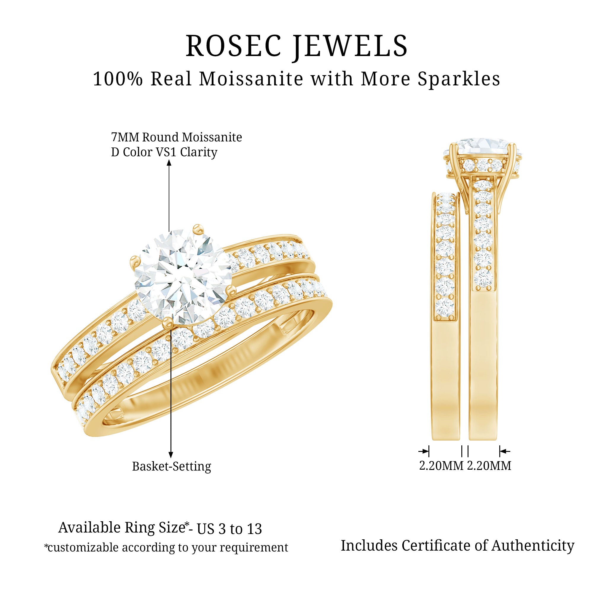 Brilliant Cut Moissanite Round Engagement Ring With Band