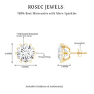 Rosec Jewels Moissanite Stud Earrings shine with incredible brilliance. They feature a 7 MM round moissanite set in prong setting, allowing the stone to catch the light beautifully. With a secure screw-back closure, these solitaire studs stay comfortably in place all day, making them a great choice for everyday wear or special occasions. Simple and elegant, these Solitaire Stud Earrings pair well with any outfit, whether you are heading to work, going out for dinner, or attending a celebration. Their bright sparkle adds just the right touch of style without feeling too bold. Because they are made with D-VS1 quality moissanite, you get the look of luxury with excellent durability and shine. These Moissanite Earrings also make a wonderful gift for birthdays, anniversaries, or any moment when you want to make someone feel special. They come with a certificate of authenticity, giving you confidence in your purchase. Packaged in a beautiful jewelry box, they are ready to gift right away or store safely when not being worn. You can also choose from different metal color options to match your personal style, making these Everyday Earrings a thoughtful and meaningful piece that your loved one will treasure.