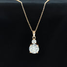 Timeless sparkle and elegant design define this beautiful Moissanite Pendant Necklace, created to shine with meaning and style. A stunning 9 MM round Moissanite sits at the center, securely held in prong setting to enhance its brilliance and fire. Just above it, a 4 MM round Moissanite adds a delicate touch of sparkle, creating a balanced and eye-catching look. Crafted with D-VS1 quality Moissanite, this Two Stone Necklace offers exceptional clarity, durability, and diamond-like shine. The stones reflect light beautifully, giving the pendant a radiant glow with every movement. Suspended from a comfortable chain, the Round Pendant Necklace rests smoothly on the neckline and feels light enough for daily wear. The simple two stone design carries meaning, often symbolizing unity, love, and special connections. Perfect as a gift for anniversaries, birthdays, or meaningful moments, this Moissanite necklace is more than an accessory - it is a lasting reminder of beauty, emotion, and timeless elegance.