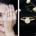 Effortlessly chic and timelessly sophisticated, this Solitaire Moissanite Engagement Ring highlights the allure of simplicity with a contemporary flair. At its center, a stunning 8 MM round cut moissanite draws the eye, sparkling brilliantly from every angle and securely set in 6-prong setting. The high profile style beautifully lifts the round cut stone, allowing light to pour in and enhance its natural fire and brilliance. With a smooth, sleek band, this piece perfectly balances modern elegance with lasting charm. Carefully handcrafted with attention to detail, this 2 Carat Moissanite Ring is made for those who value both beauty and significance in their jewelry. Offered in various ring sizes for a perfect fit, it comes in a thoughtfully crafted jewelry box, ready to be gifted or cherished for years ahead. Striking without being overwhelming, elegant without being ordinary, this Round Cut Engagement Ring is the perfect emblem of a love that is both strong and graceful. Let this gorgeous piece embody your forever, shining with brilliance and heartfelt elegance every single day.