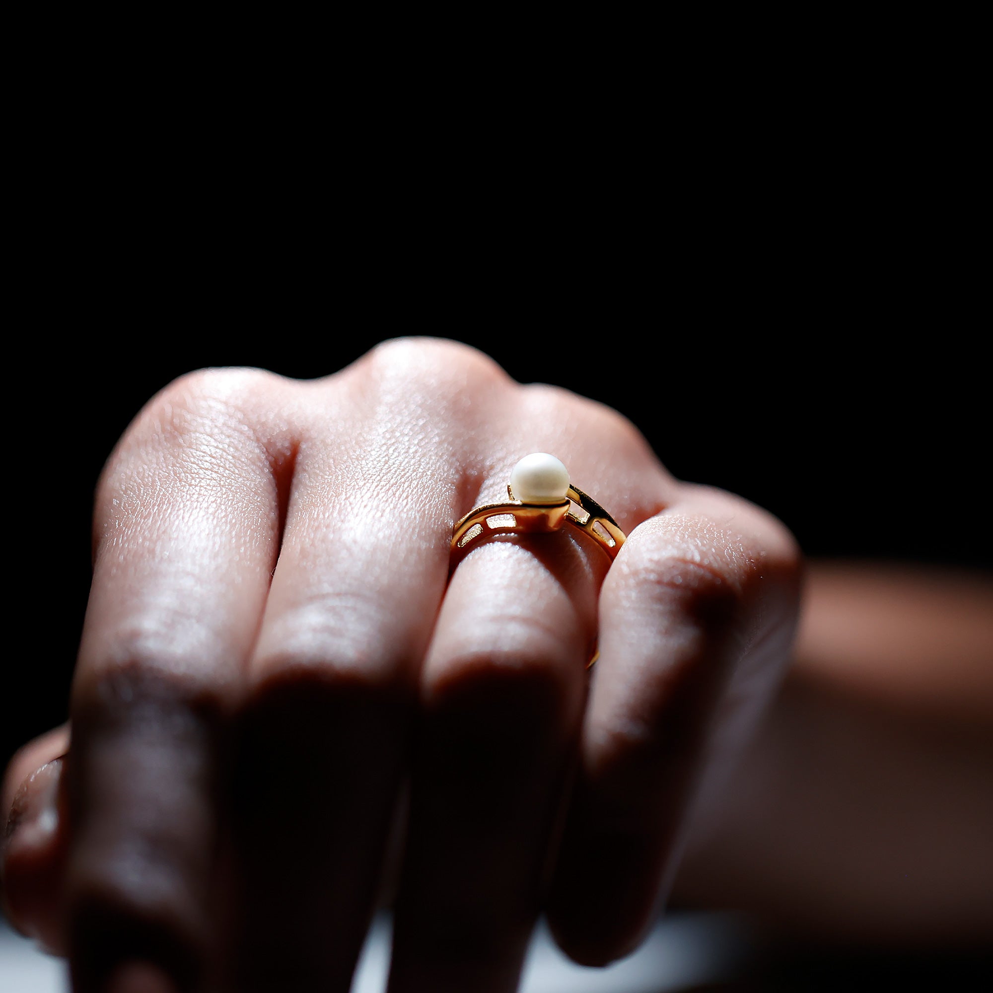 This simple and elegant Freshwater Pearl Solitaire Ring is embellished with Round Shape Freshwater Pearl secured by Bead Setting, crafted with Hallmarked Metal. • You can style this Freshwater Pearl Bypass Ring with your simple or special attire and let her stand out from the crowd.
