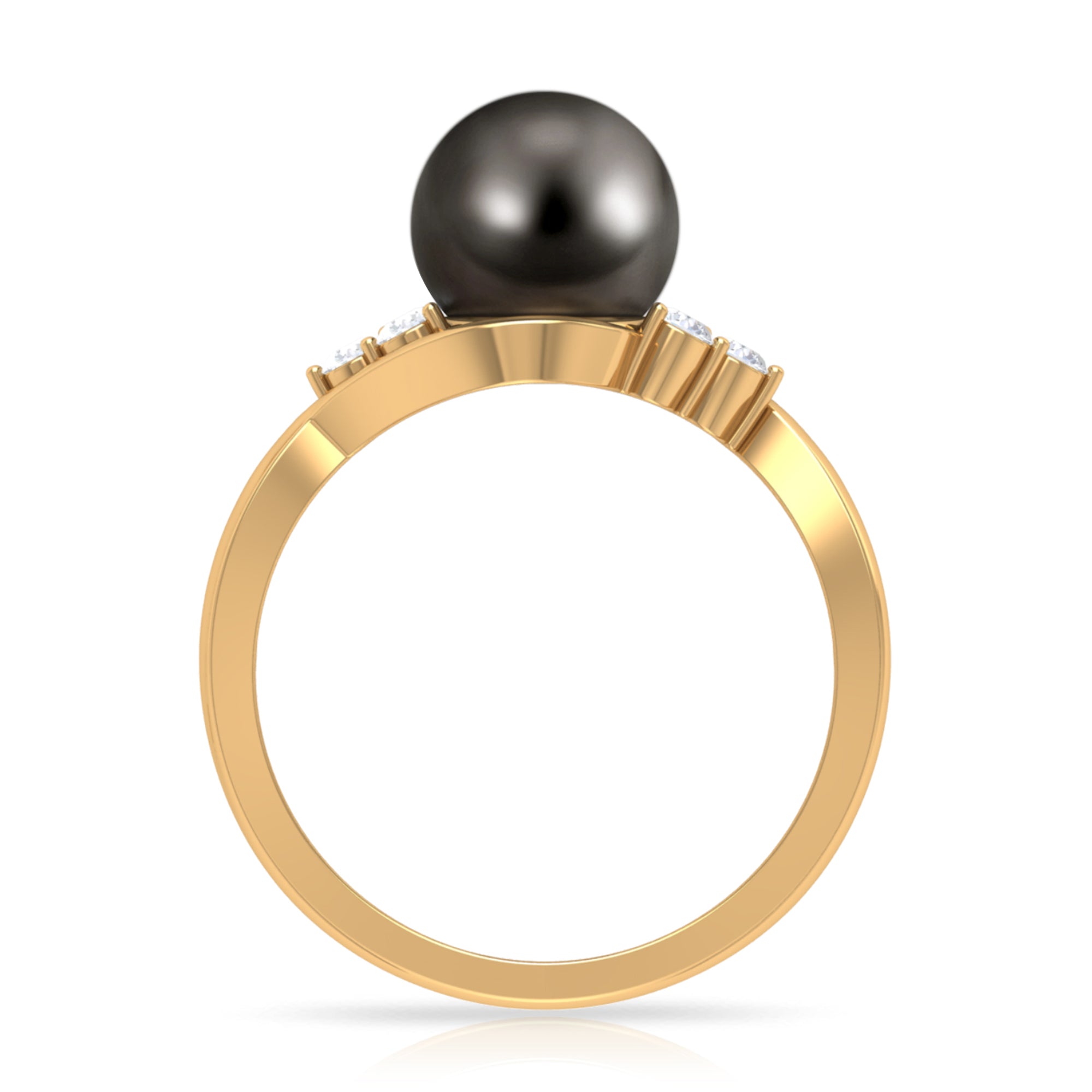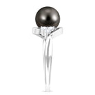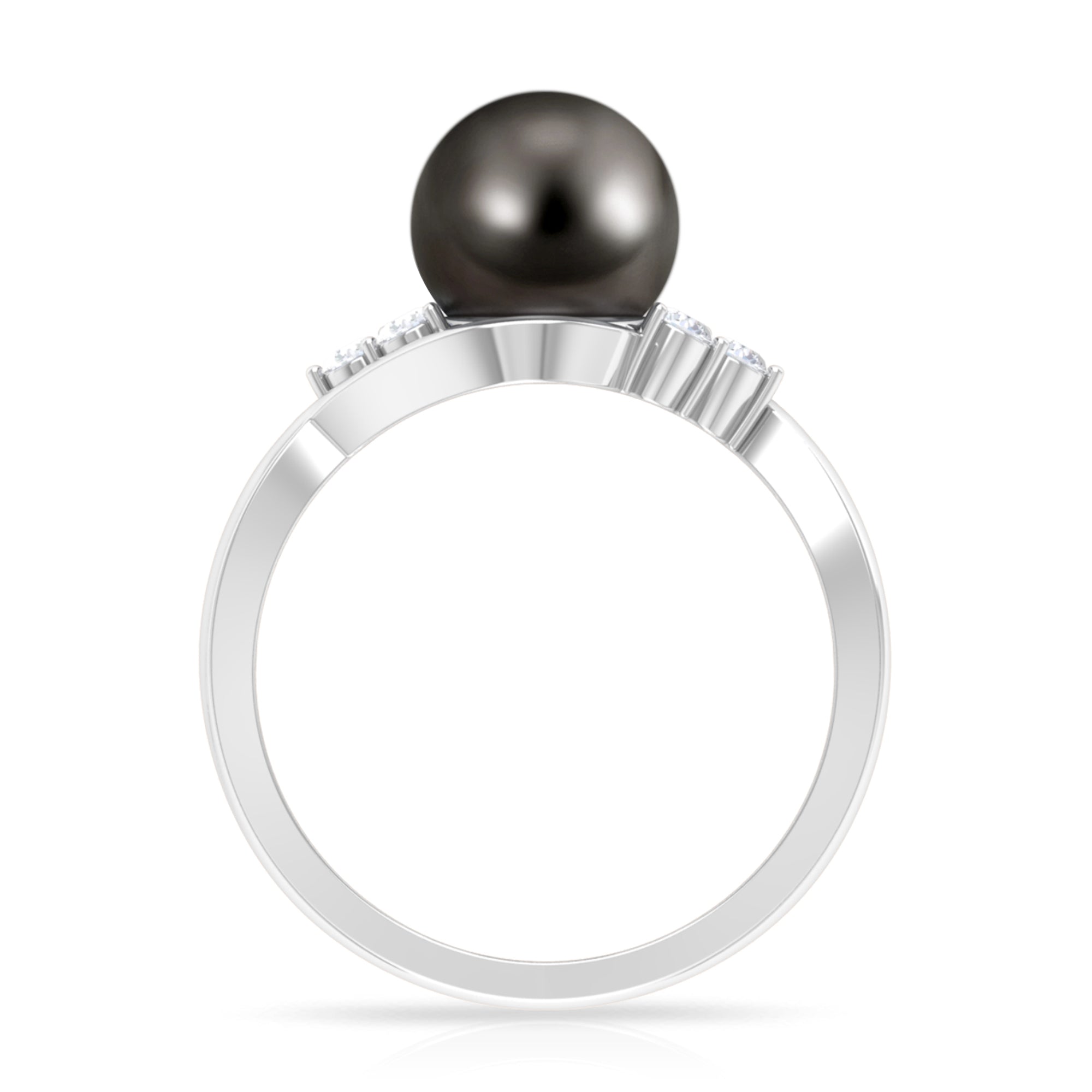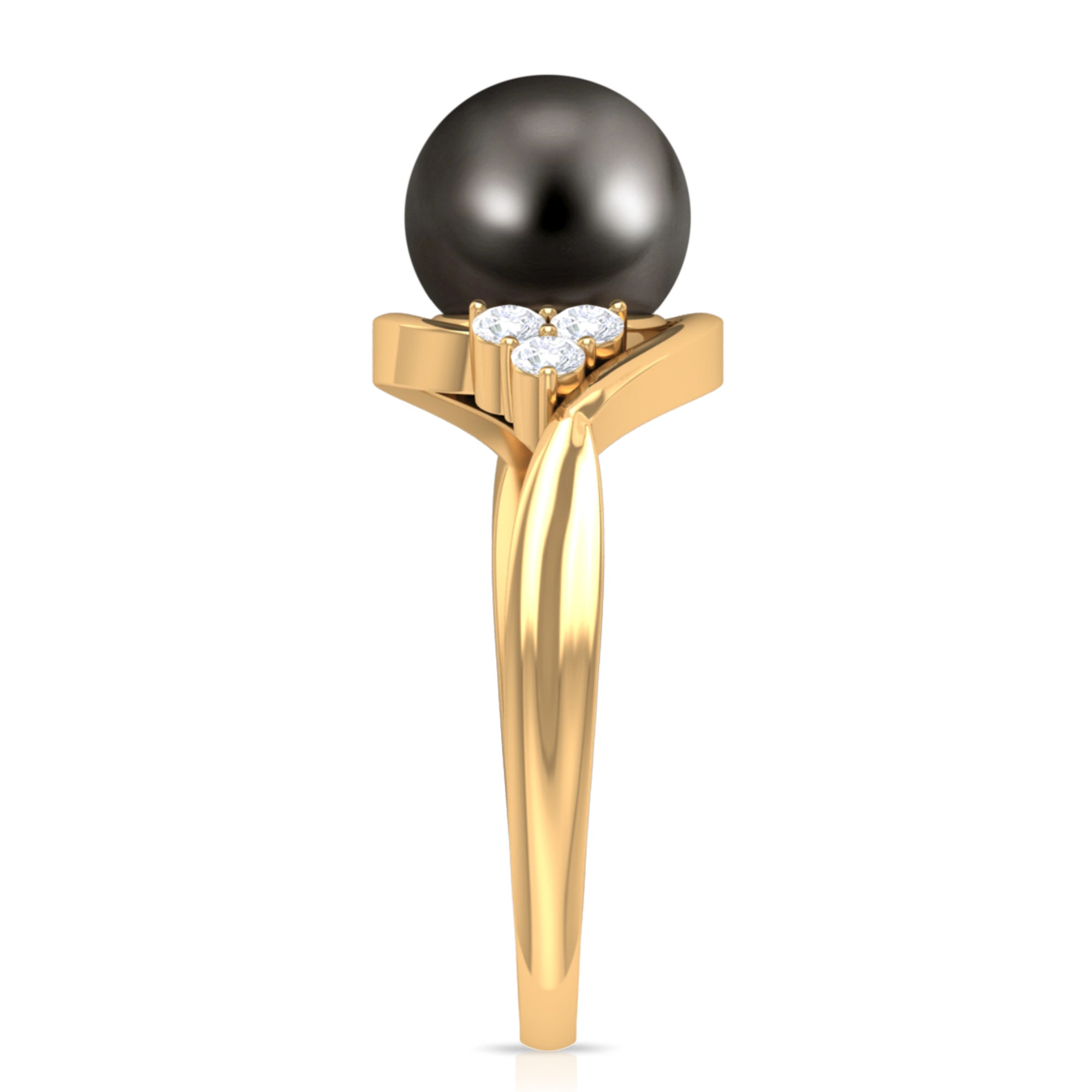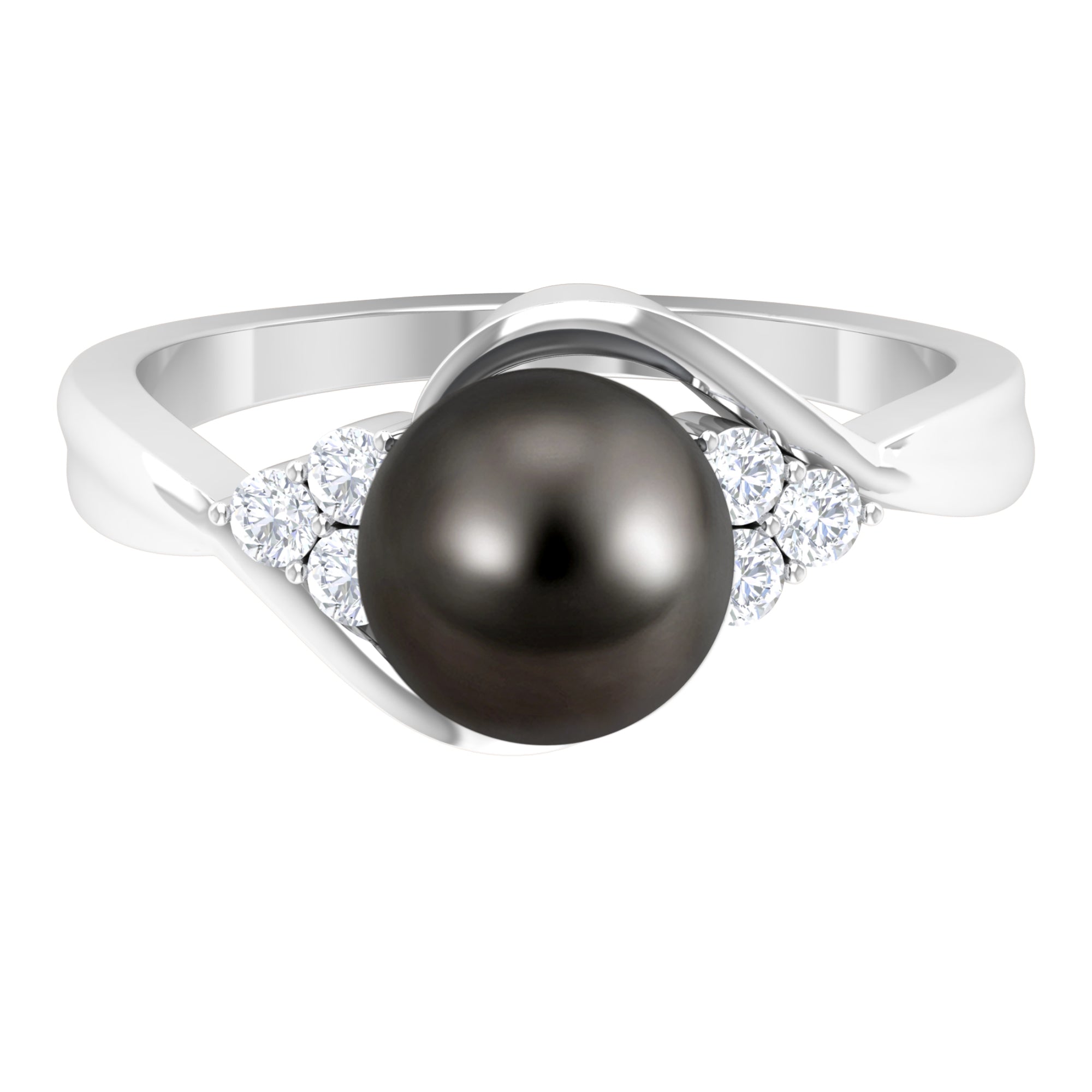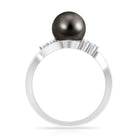 Bypass Tahitian Pearl Engagement Ring with Diamond Trio