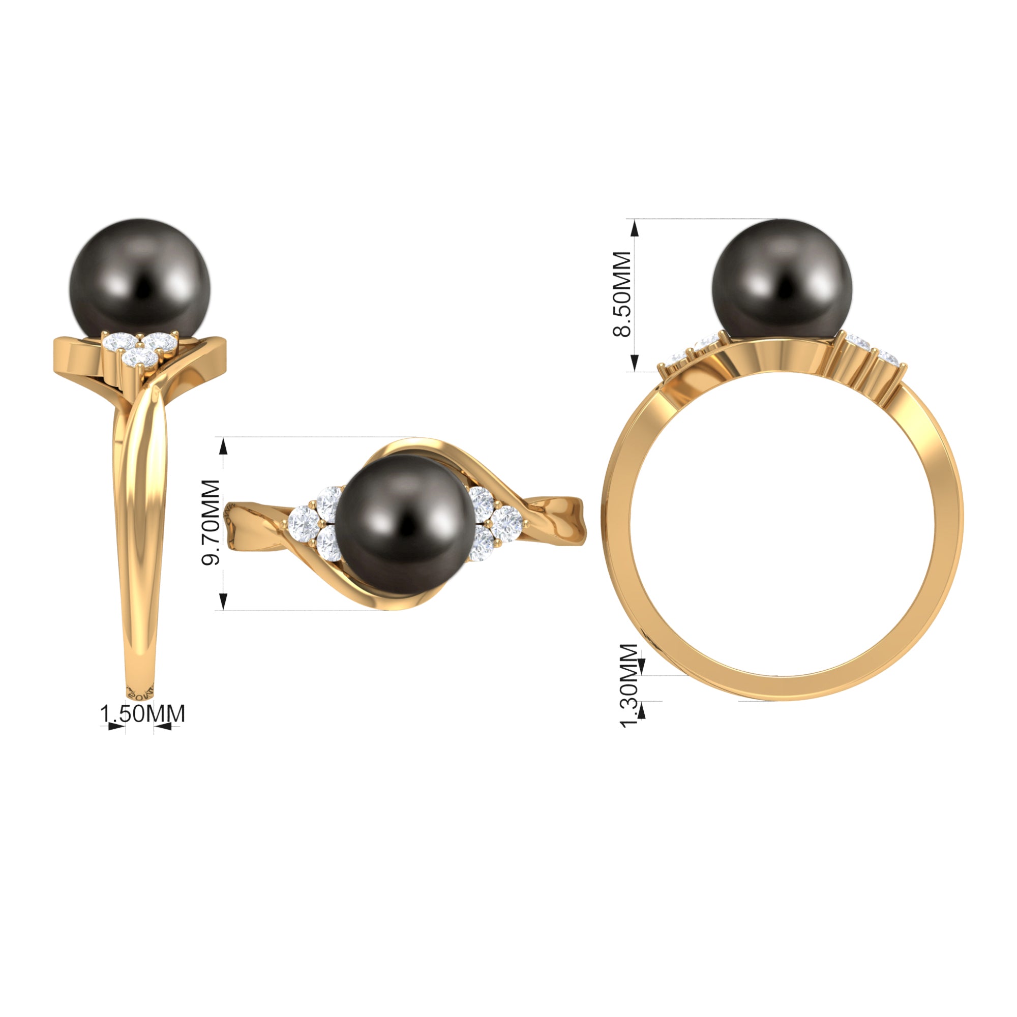 This Tahitian Pearl Engagement Ring draws inspiration from the elegant pattern, and is an absolute delight for the senses. The fiery black pearl gemstone amid a dazzling round Diamond trio on both side that highlights its ravishing hue. Beautiful Bypass Pearl Engagement Ring add to the allure to the outfit your wear.