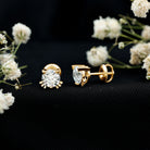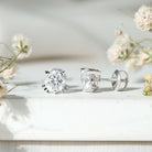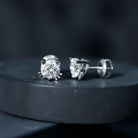 Cat Solitaire Stud Earrings with 4 MM Round Shape Moissanite in Prong Setting