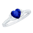 Certified 1 Carat Lab Grown Blue Sapphire Heart Engagement Ring with Real Diamond