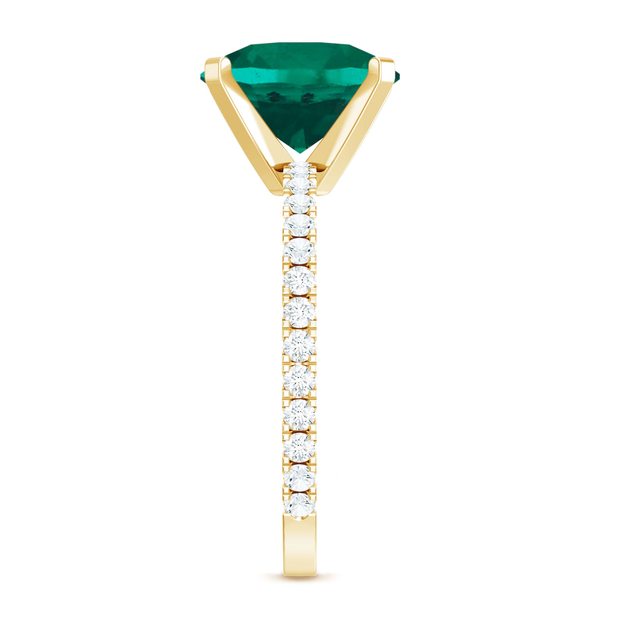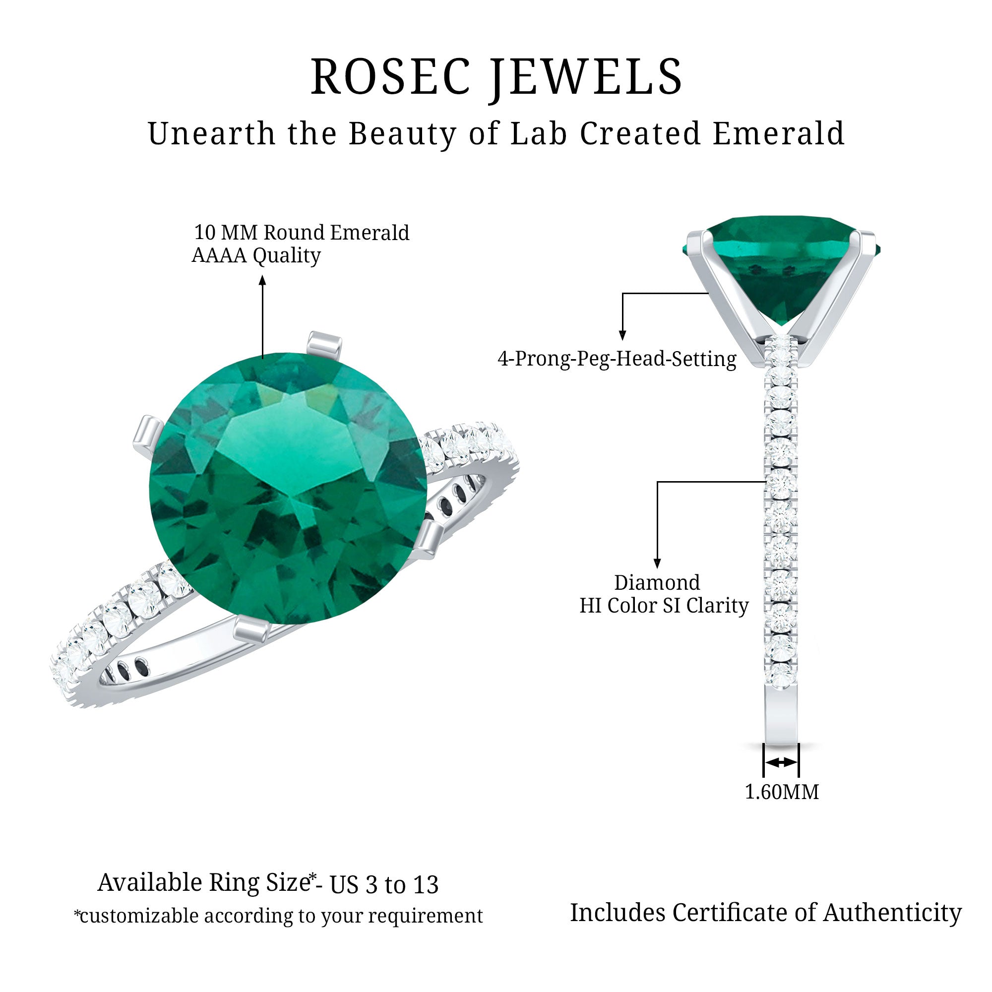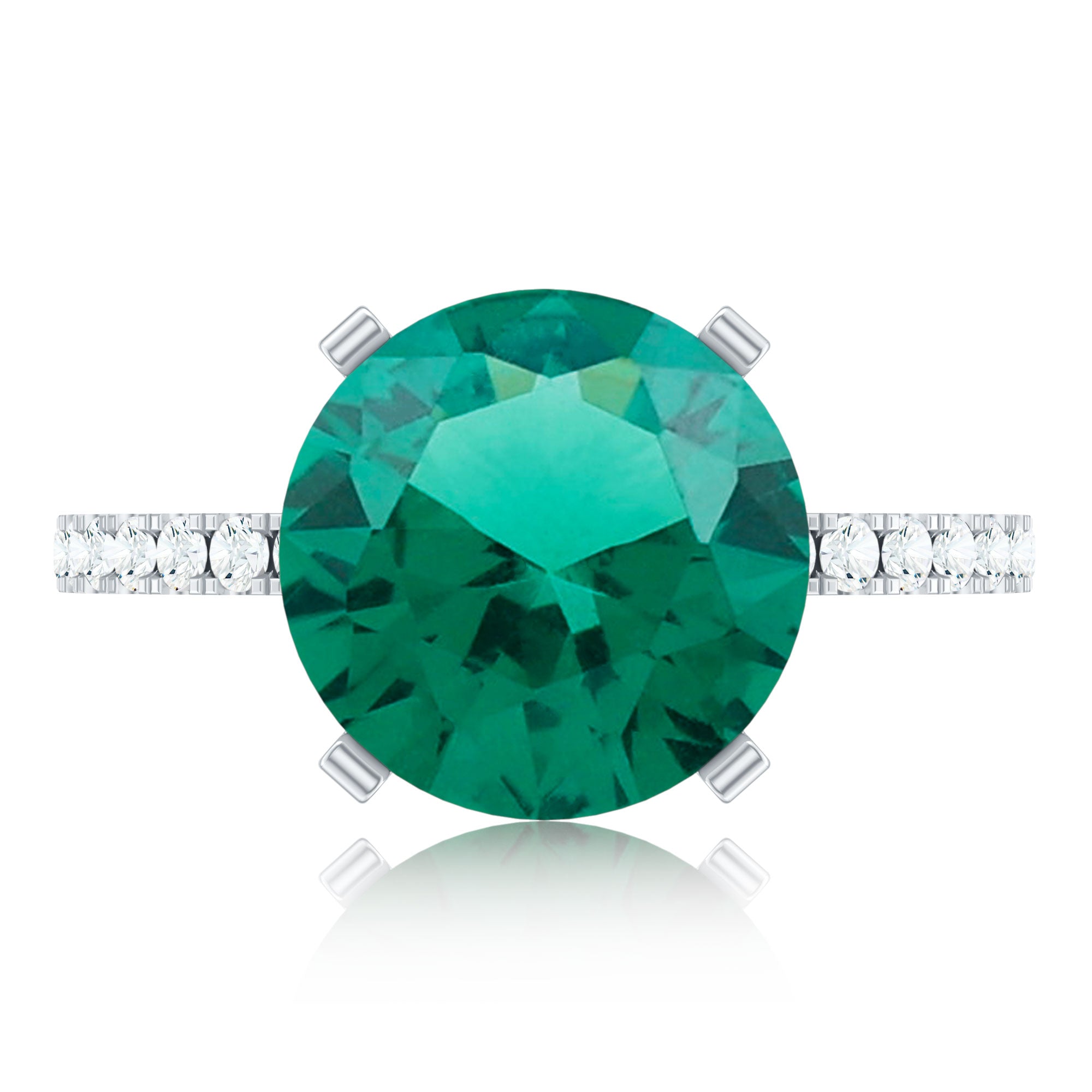 Certified 10 mm Solitaire Lab Grown Emerald Engagement Ring with Diamond