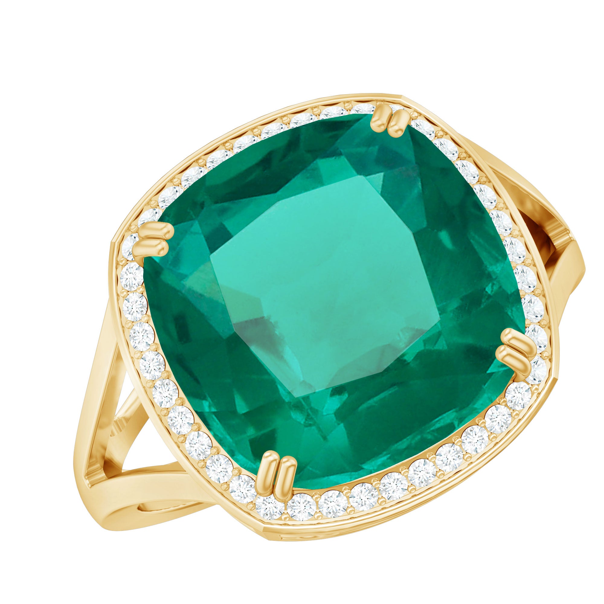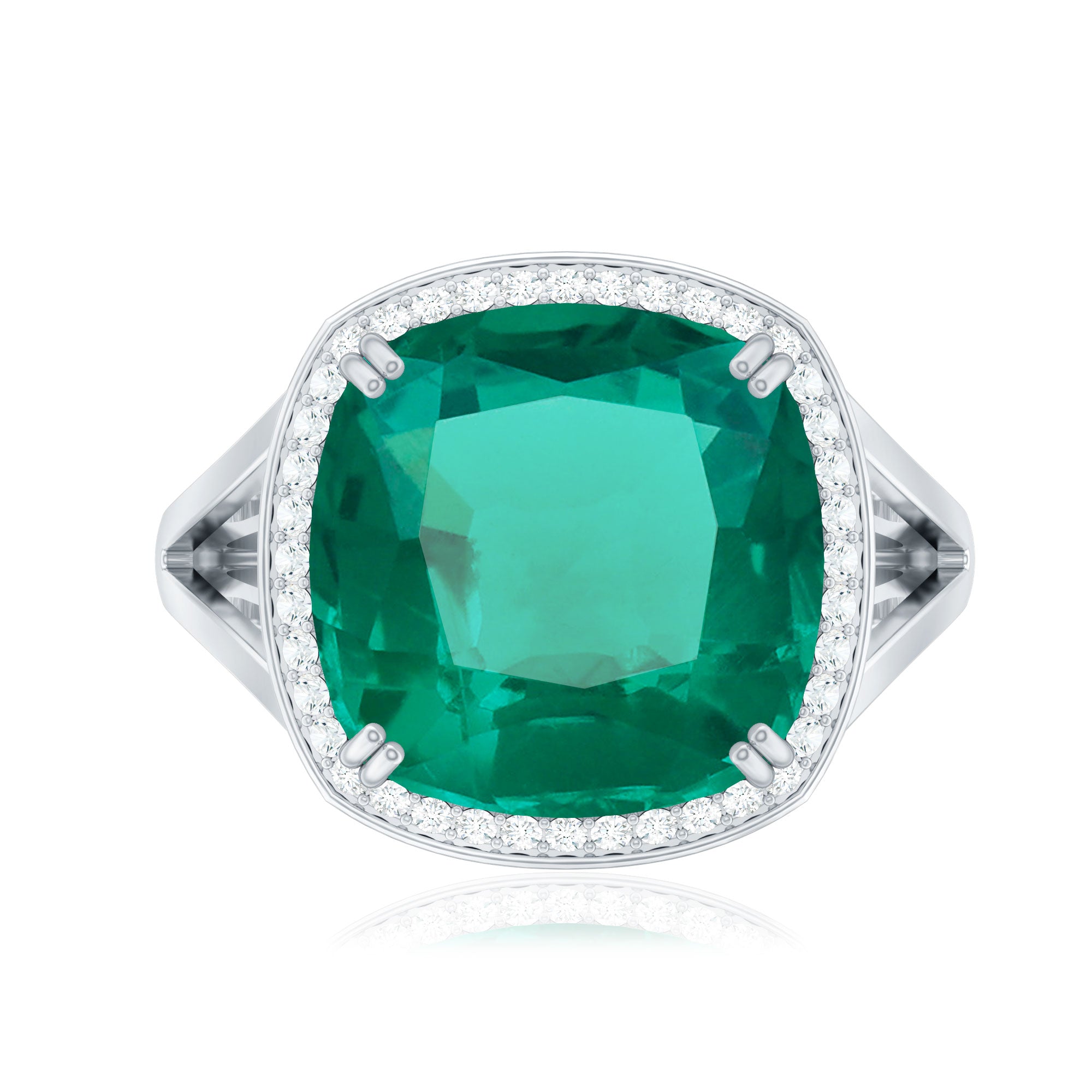 Certified 12 mm Lab Grown Emerald Cushion Cut Engagement with Diamond Halo