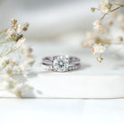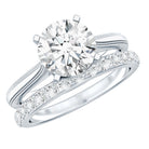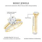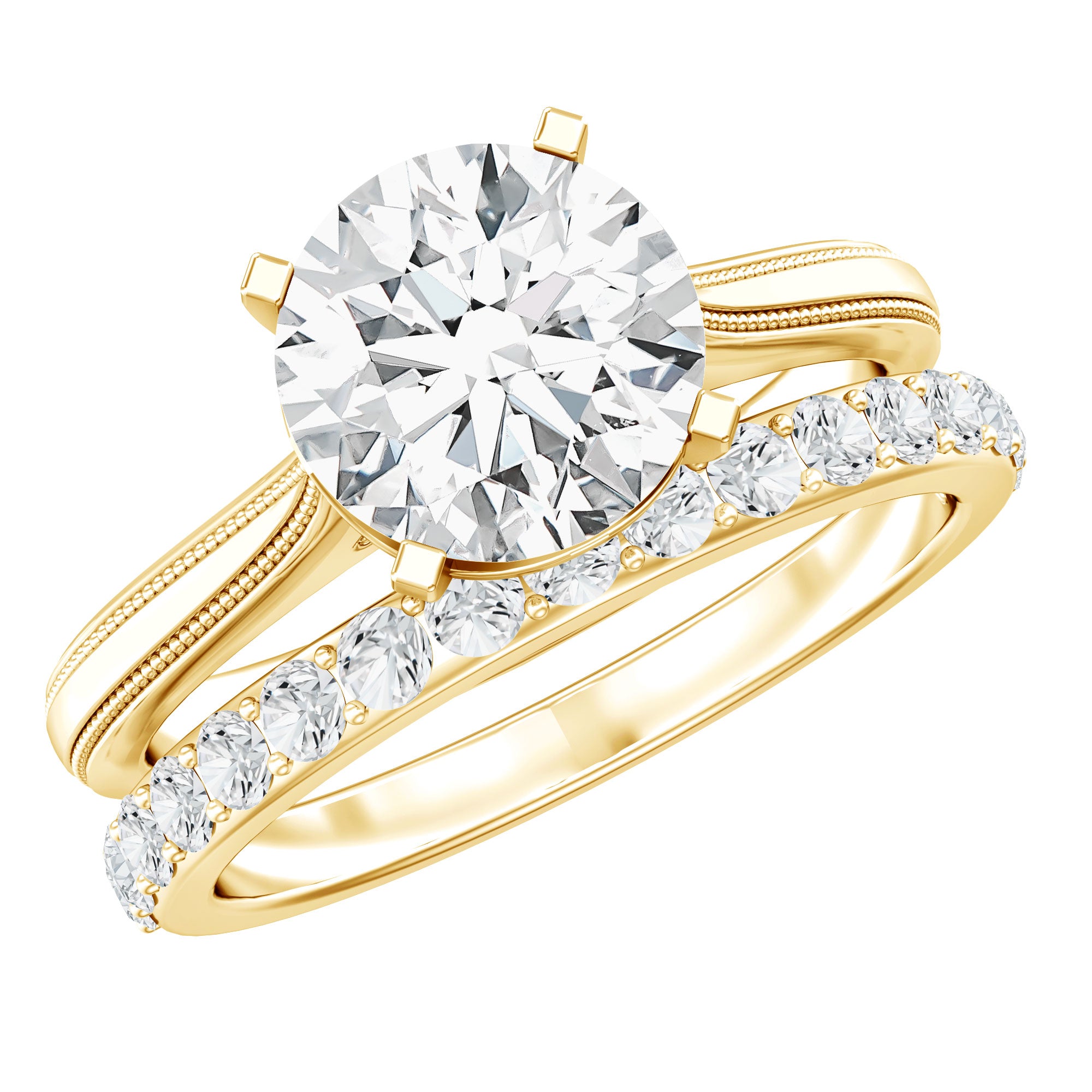 The Solitaire Wedding Ring Set features a Cathedral Engagement Ring that showcases a stunning 8 MM round lab-grown diamond, complete with a surprise diamond and milgrain detailing on the band. The Half Eternity Wedding Band is also embellished with round-cut lab-made stones. The solitaire stone is set in basket setting, enhancing its sparkle and drawing attention as it rises from the finger. These rings form a beautiful pair that can be worn separately or together, depending on the occasion. We deliver this Diamond Engagement Ring Set in a signature jewelry box, creating unforgettable moments when you present it to her, and providing safe storage for later. Let her fall even more in love with our Engagement and Wedding Set on the big day, and get ready for a big Yes. We craft this Lab Created Diamond Bridal Ring Set in a variety of precious metals, offering options for color and purity. The exquisite detailing, brilliant sparkle, and thoughtful design ensure it stands out at every event, from proposals to anniversaries. Your love story deserves a 2 Carat Diamond Ring Set that shines just as brightly, and this one will make every moment unforgettable.