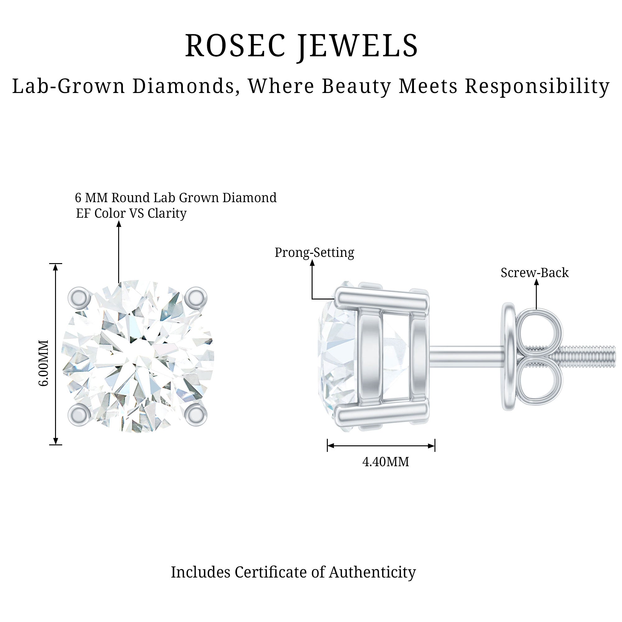 Simply stunning, these Lab Grown Diamond Earrings are the kind of timeless piece that elevates any look with effortless grace. Each earring features a dazzling 6 mm Round Shape Lab Grown Diamond set in Prong Setting that reflects light with extraordinary clarity, giving you a radiant sparkle that feels both elegant and modern. Secured with a Screw Back Closure, these Lab Diamond Earrings offer maximum comfort and peace of mind, perfect for everyday wear or for adding a polished touch to your favorite outfits. Whether you pair them with casual styles, office attire or special-occasion dresses, these Lab Grown Diamond Studs blend seamlessly with everything, making them an essential addition to any jewelry collection. Presented in a beautiful jewelry box, these Lab Created Diamond Earrings are ready to gift for Christmas, anniversaries, birthdays or any moment when you want to show someone how special they are. These Lab Diamond Studs are meaningful pieces designed to shine, celebrate and become cherished for years to come.