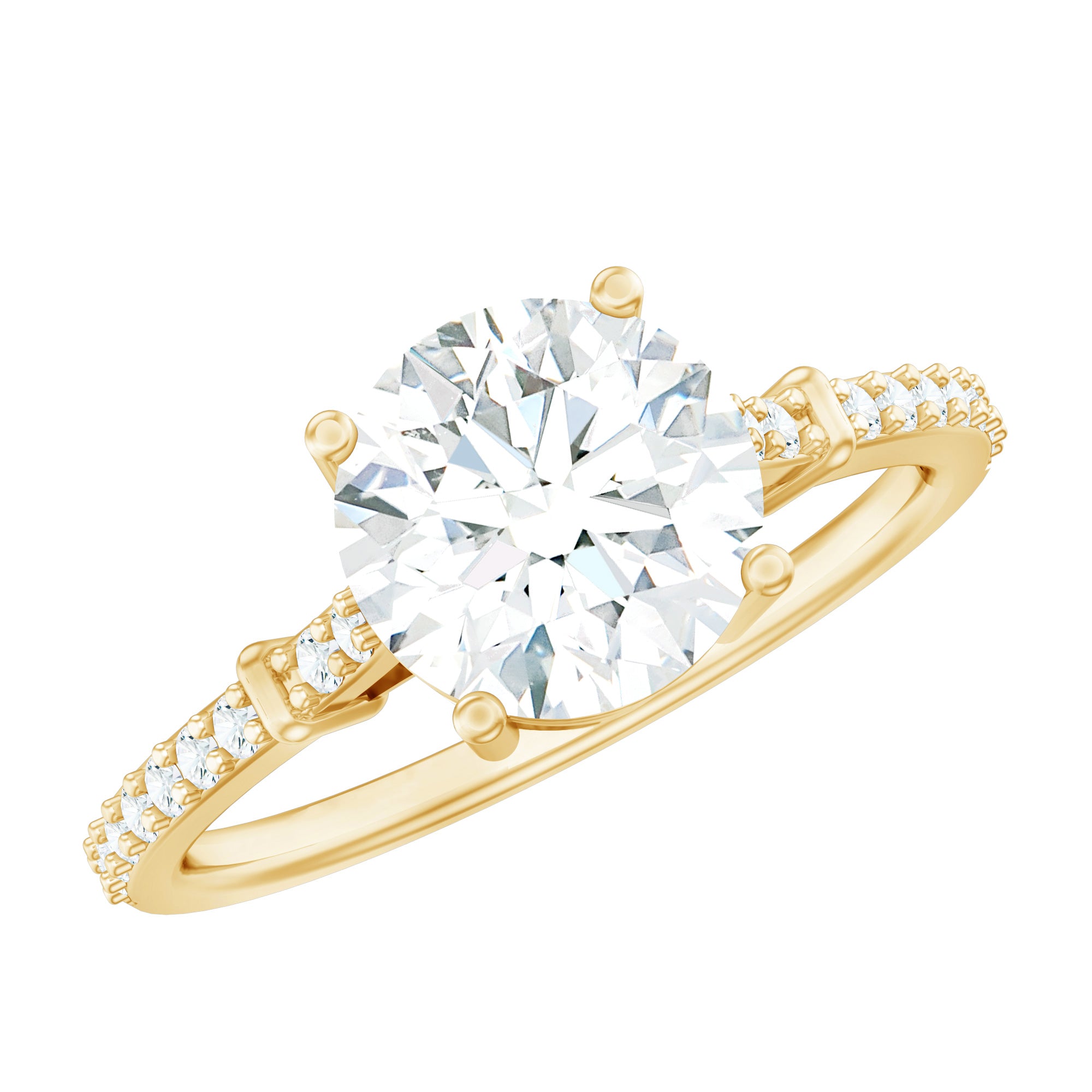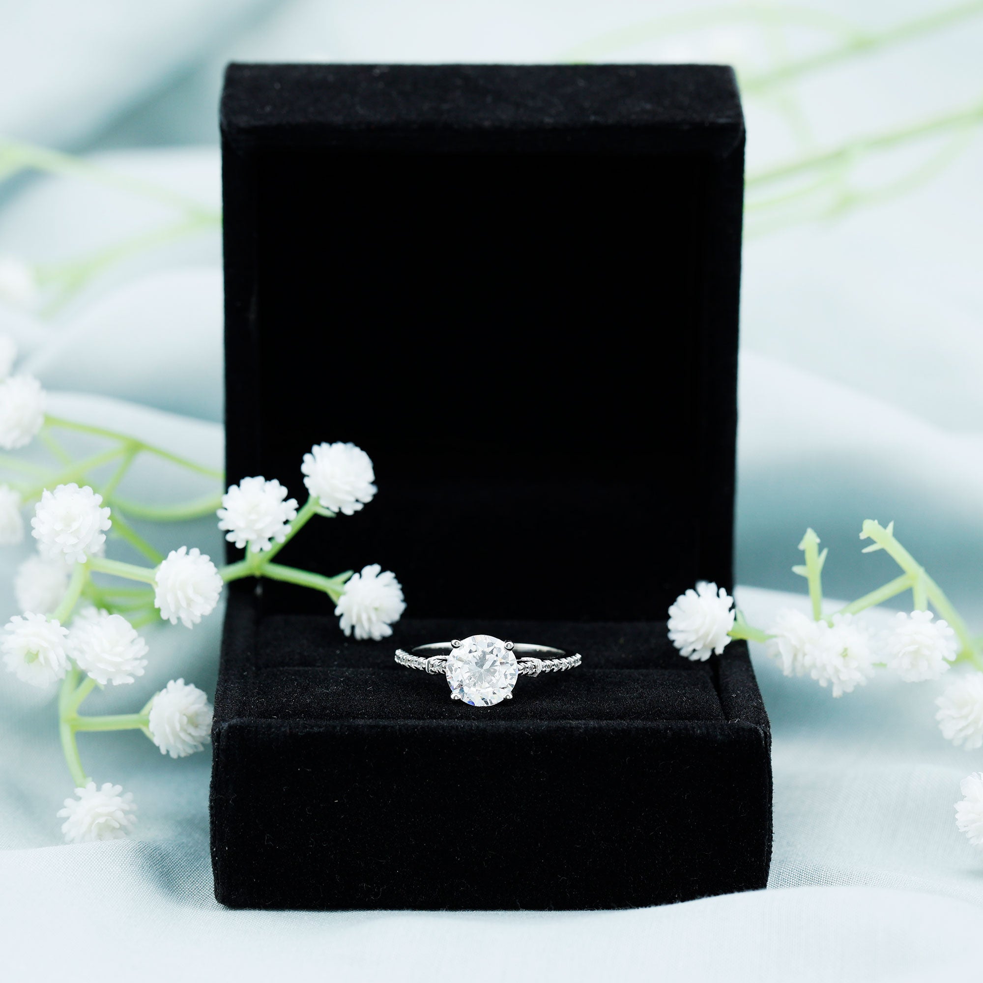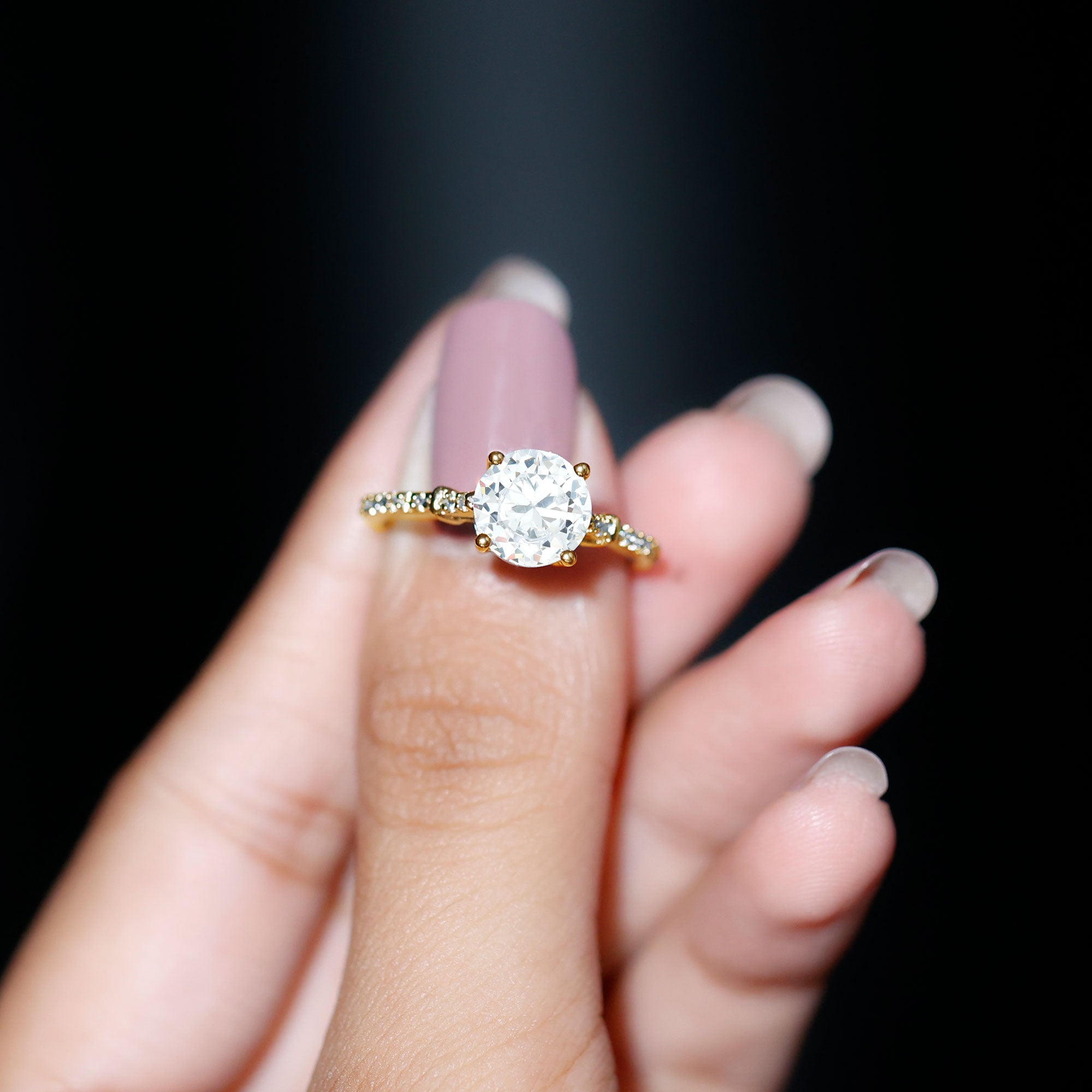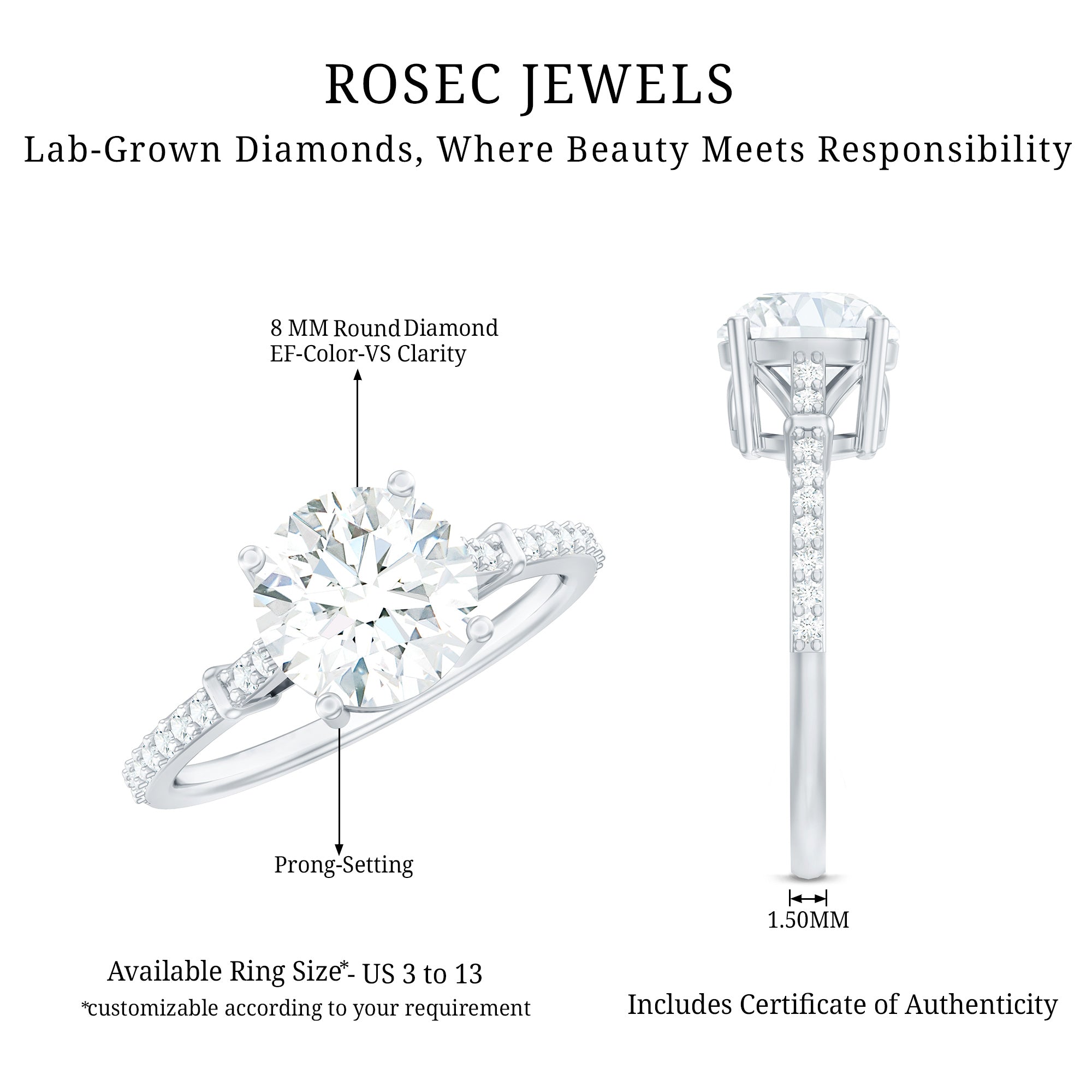 This stunning Diamond Engagement Ring is sure to impress anyone who sees it. At its center, it features an 8 MM round cut diamond of Ef- Vs quality set in prong setting, making it the ideal Solitaire Engagement Ring. The band is adorned with smaller diamonds and made of top-notch metal for comfortable wear, and its simple yet elegant design makes it suitable for everyday wear as well as special occasions. This Round Engagement Ring is more than just a piece of jewelry, it shines with beauty and unconditional love. We have created it with Lab Grown Gemstones, so not only does this Diamond Solitaire Ring look stunning but it is also environmentally friendly. Start your forever with a piece that is gorgeous and kind to the planet.