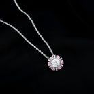 Certified 2 CT Moissanite and Lab Grown Pink Sapphire Flower Pendant Necklace