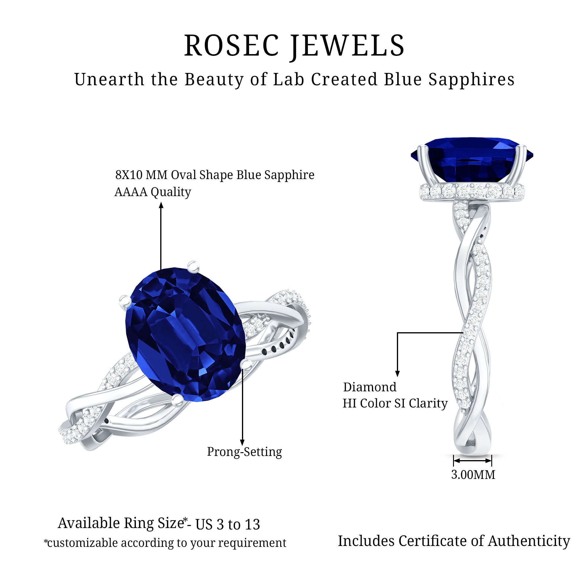 Grab compliments all night long with this breathtaking Oval Engagement Ring, a design created to celebrate love in the most elegant way. At the center shines a striking 8X10 mm Oval Shape Lab Grown Blue Sapphire set in Prong Setting, glowing with a deep royal blue brilliance that instantly draws attention. Its rich color symbolizes loyalty, trust and everlasting commitment, making it a meaningful choice for an engagement ring. Just beneath the center stone sits a Diamond Halo, a surprise detail that adds extra sparkle from every angle. The beautifully Braided Band is adorned with shimmering Diamond stones that intertwine gracefully, representing two lives woven together in love. This thoughtful design blends modern elegance with timeless romance, making the Lab Blue Sapphire Engagement Ring truly unforgettable. Whether it is presented during a heartfelt proposal or given to mark a special milestone, this Lab Blue Sapphire Diamond Ring becomes a symbol of a promise meant to last forever. Crafted to shine during the most meaningful moments of life, this Big Engagement Ring with Sapphire (Lab Grown) pairs beautifully with both classic and modern styles. Presented in a signature jewelry box and available in various ring sizes for the perfect fit, this stunning Solitaire Engagement Ring is a sparkling reminder of a love story that continues to grow with every passing day.