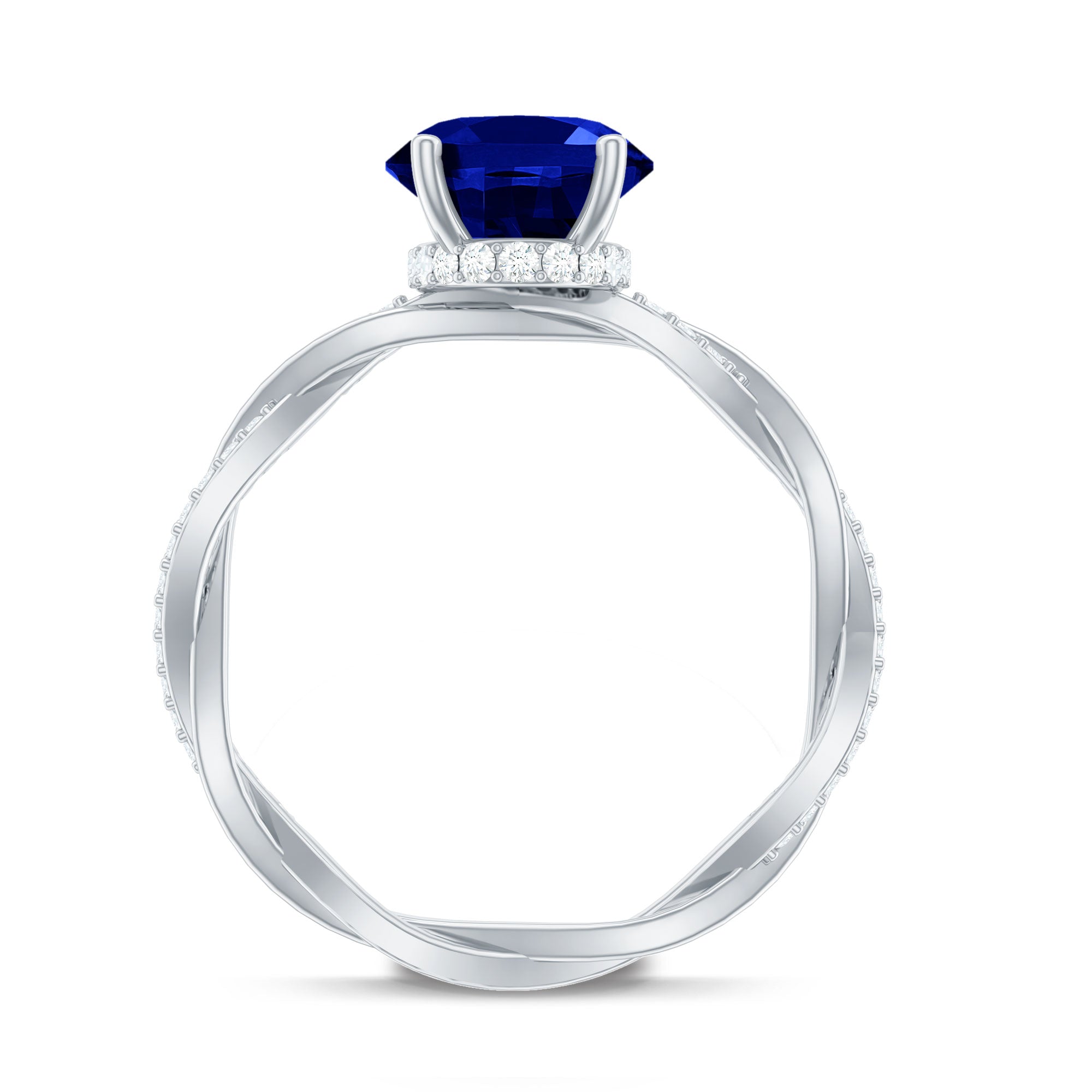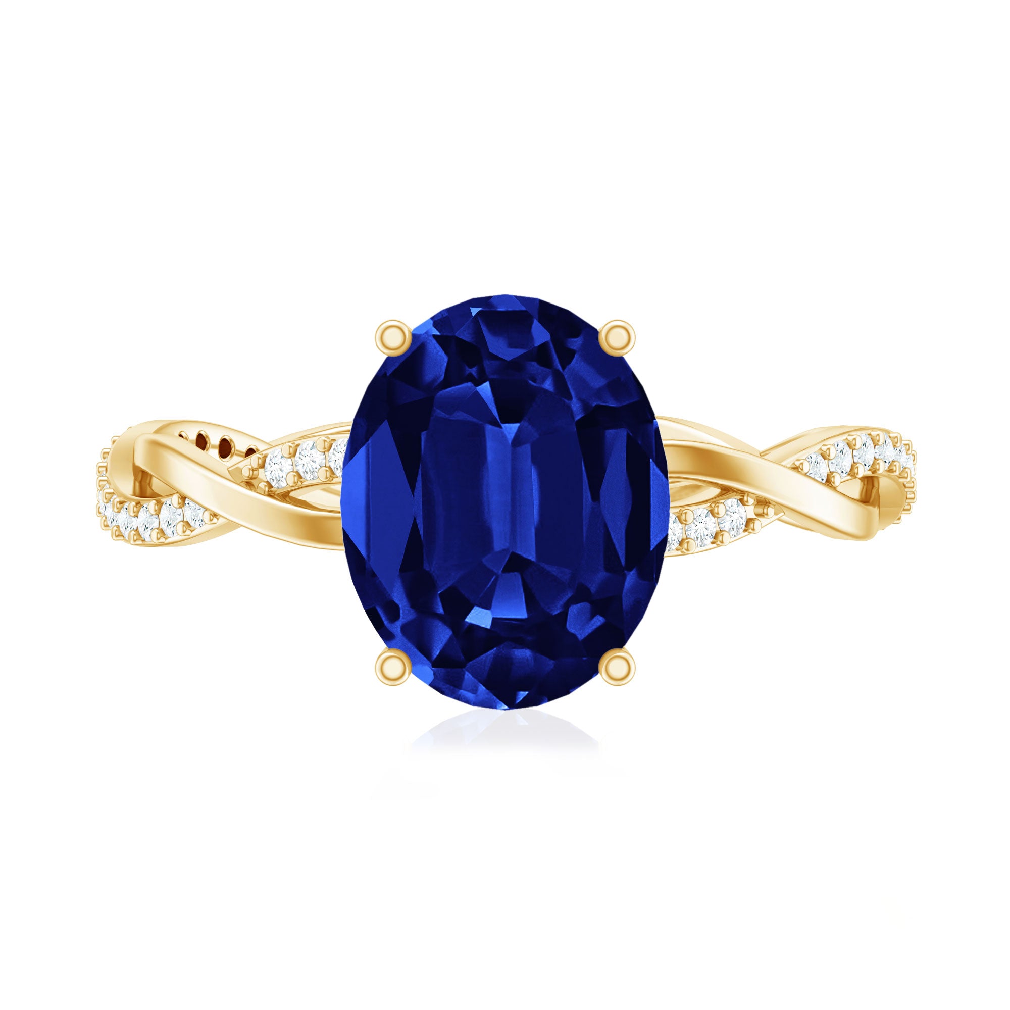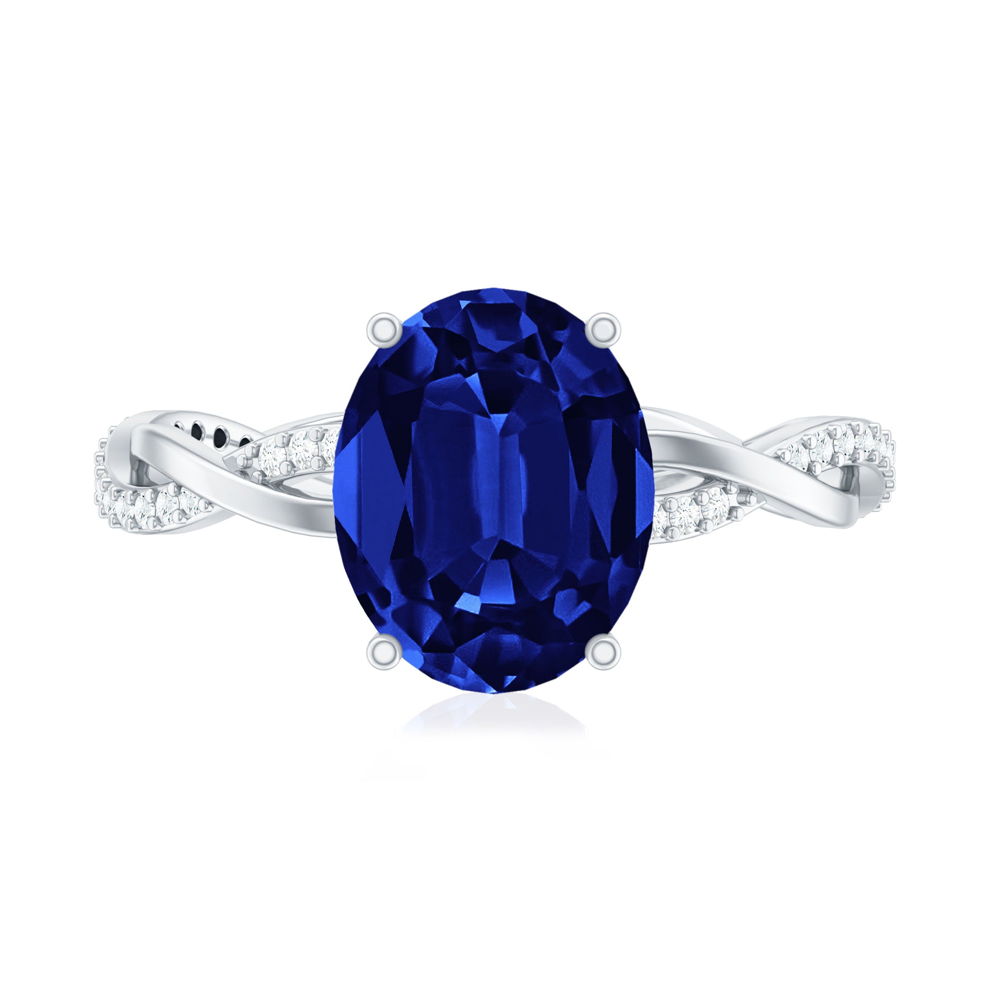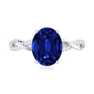 Certified 4 Carat Lab Grown Blue Sapphire Oval Engagement Ring with Diamond Braided Shank