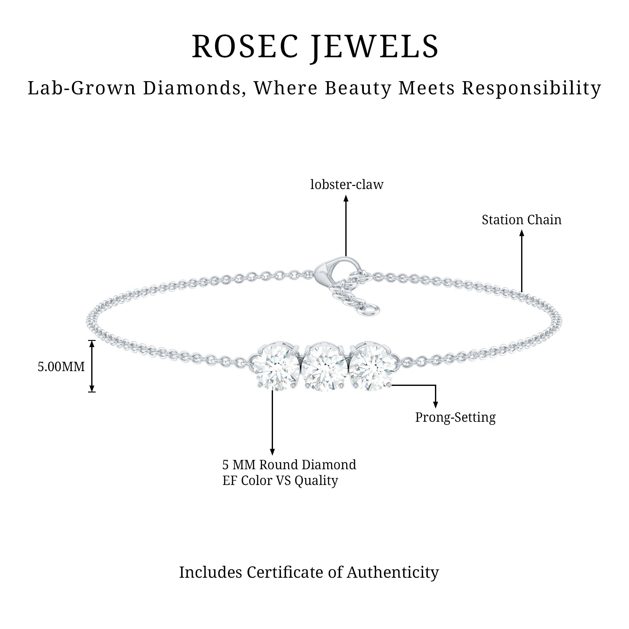 Certified 5 MM Lab Grown Diamond Bracelet for Women