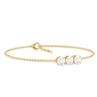 This Three Diamond Bracelet serves as a mesmerizing symbol of the past, present, and future, showcasing EF-VS quality man made diamonds that shine with exceptional brilliance. Fusing elegance with emotion, this Lab Grown Diamond Bracelet is a beloved representation of your lasting love, featuring a captivating design that reflects the journey you have shared. Meticulously handcrafted by our skilled artisans, it is embellished with three 5 MM round diamonds (lab made) securely set in prong setting at the center of a cable chain. Experience timeless beauty with this exquisite Three Stone Diamond Bracelet, which is thoughtfully crafted and chosen for its outstanding intensity, color, and clarity. This Stacking Diamond Bracelet is perfect if you want to layer it with another bracelet, or you can wear it solo to make a statement.