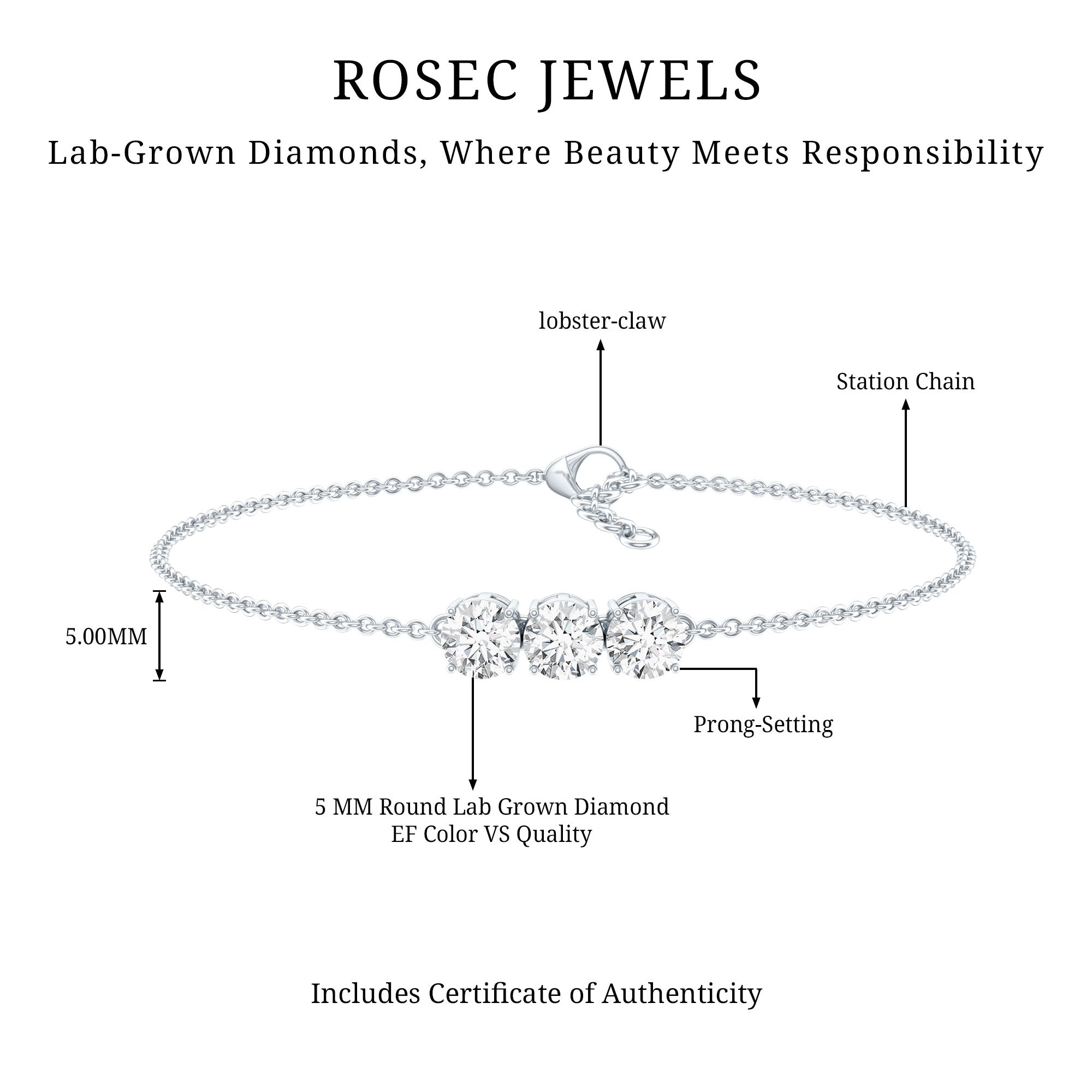 Certified 5 MM Lab Grown Diamond Bracelet for Women