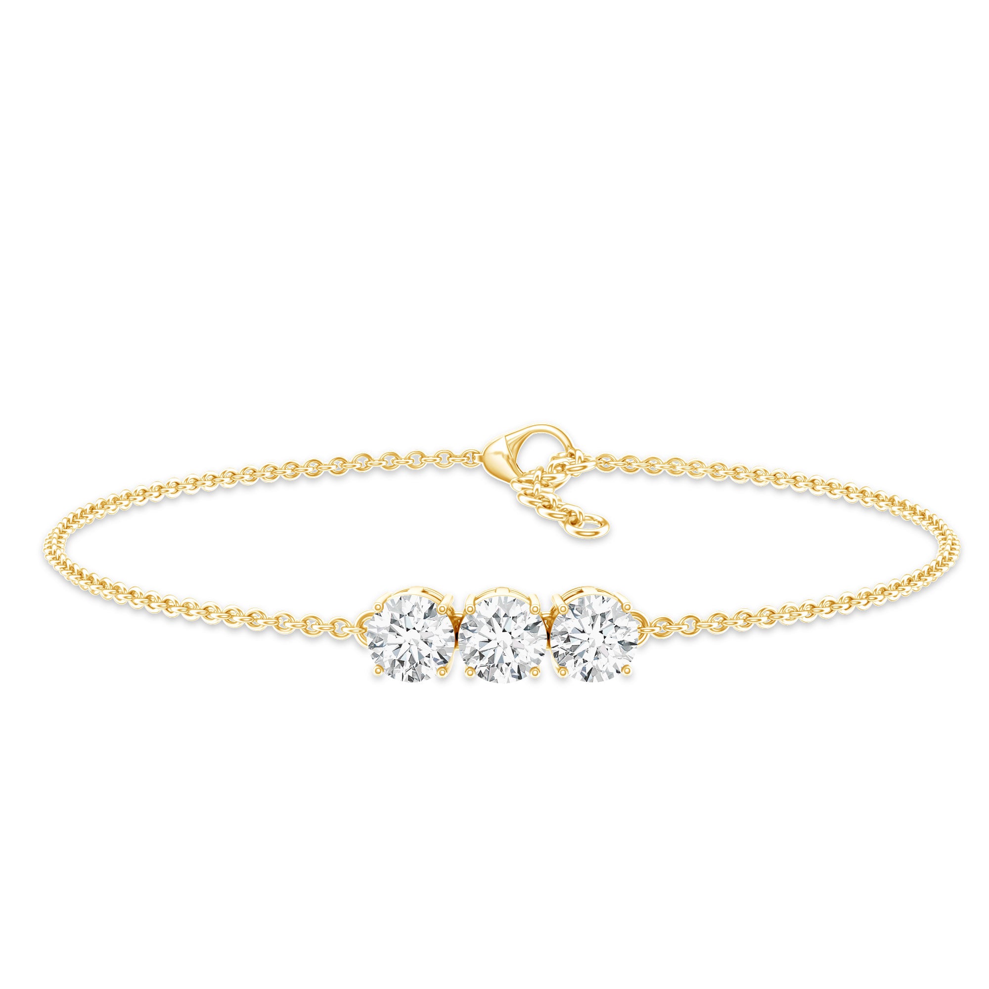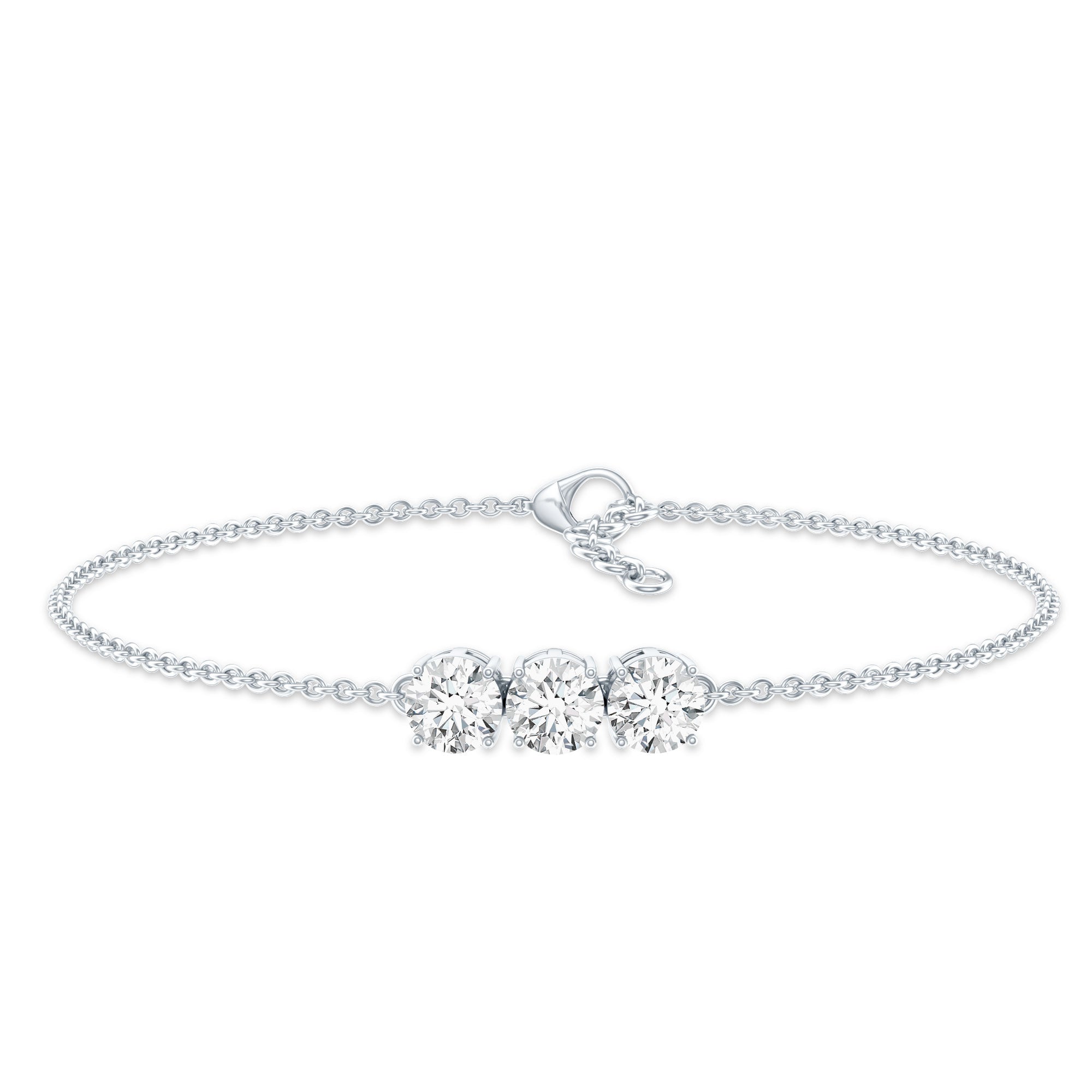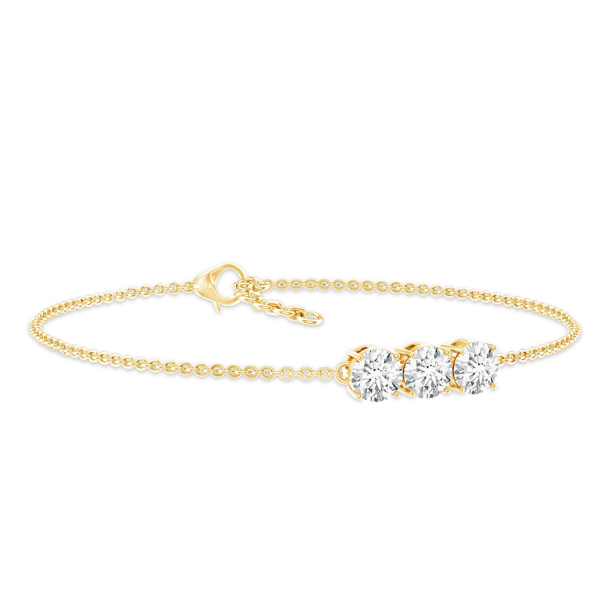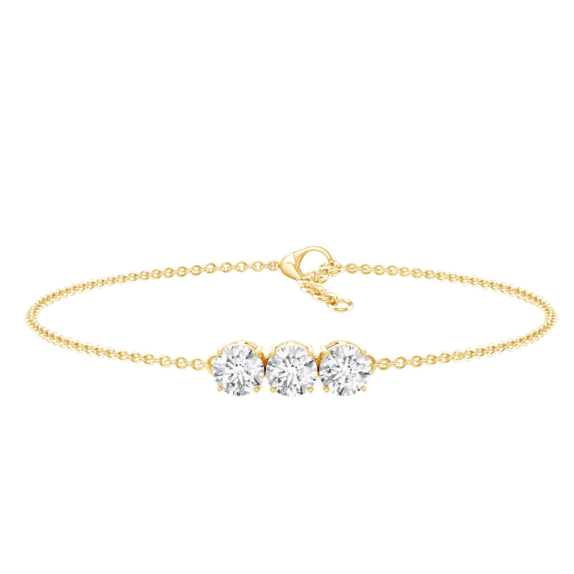 This Three Diamond Bracelet serves as a mesmerizing symbol of the past, present, and future, showcasing EF-VS quality man made diamonds that shine with exceptional brilliance. Fusing elegance with emotion, this Lab Grown Diamond Bracelet is a beloved representation of your lasting love, featuring a captivating design that reflects the journey you have shared. Meticulously handcrafted by our skilled artisans, it is embellished with three 5 MM round diamonds (lab made) securely set in prong setting at the center of a cable chain. Experience timeless beauty with this exquisite Three Stone Diamond Bracelet, which is thoughtfully crafted and chosen for its outstanding intensity, color, and clarity. This Stacking Diamond Bracelet is perfect if you want to layer it with another bracelet, or you can wear it solo to make a statement.