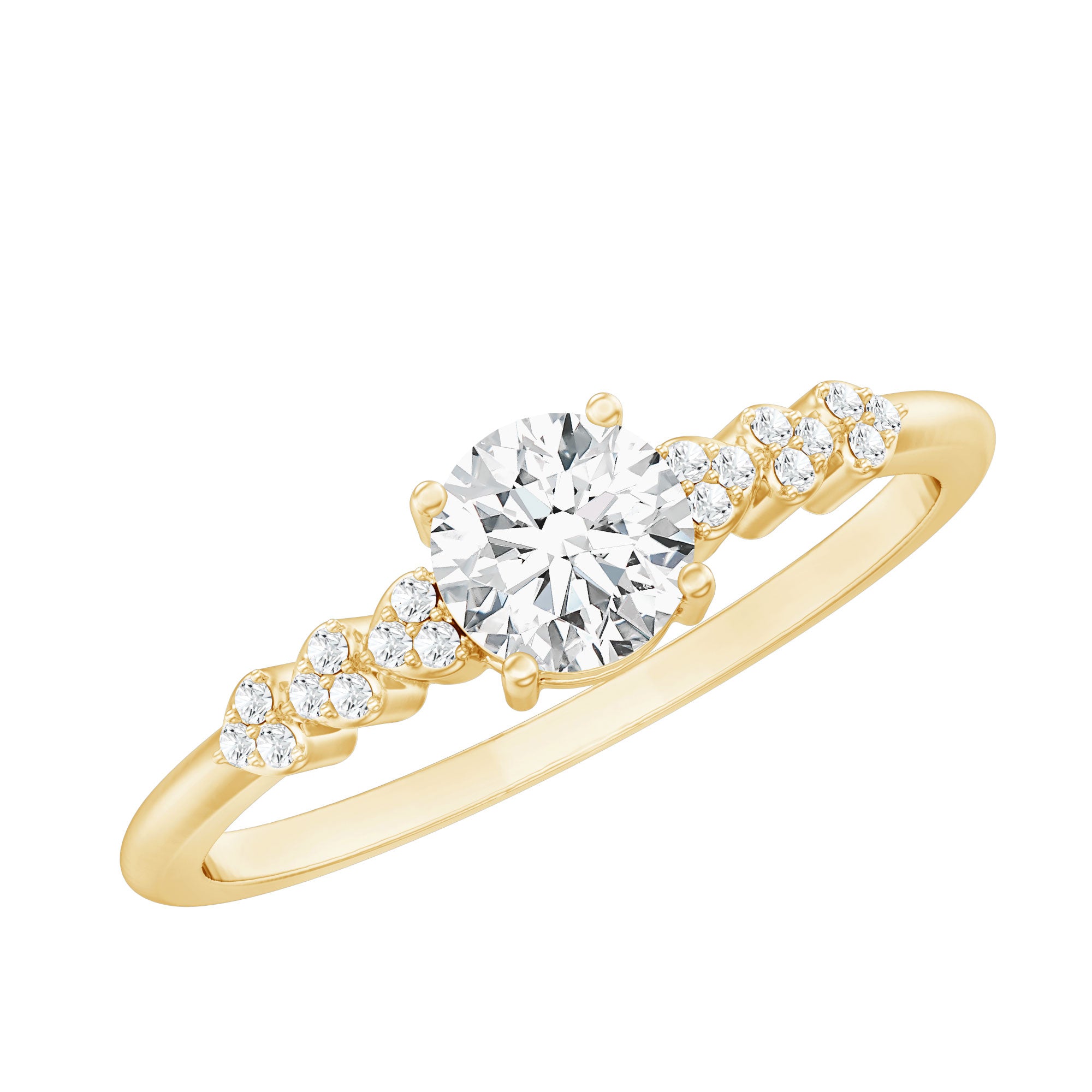 This stunning Round Diamond Ring is sure to impress anyone who sees it. At its center, it features a 5 MM round cut diamond of Ef- Vs quality set in prong setting, accompanied by three heart shaped motifs on both sides, adorned with smaller diamonds. The band is made of plain and polished metal for comfortable wear, and its simple yet elegant design makes it suitable for everyday wear as well as special occasions. This Promise Engagement Ring is more than just a piece of jewelry, it shines with beauty and unconditional love. We have created it with Lab Grown Gemstones, so not only does this Diamond Solitaire Ring look stunning but it is also environmentally friendly. Start your forever with a piece that is gorgeous and kind to the planet.