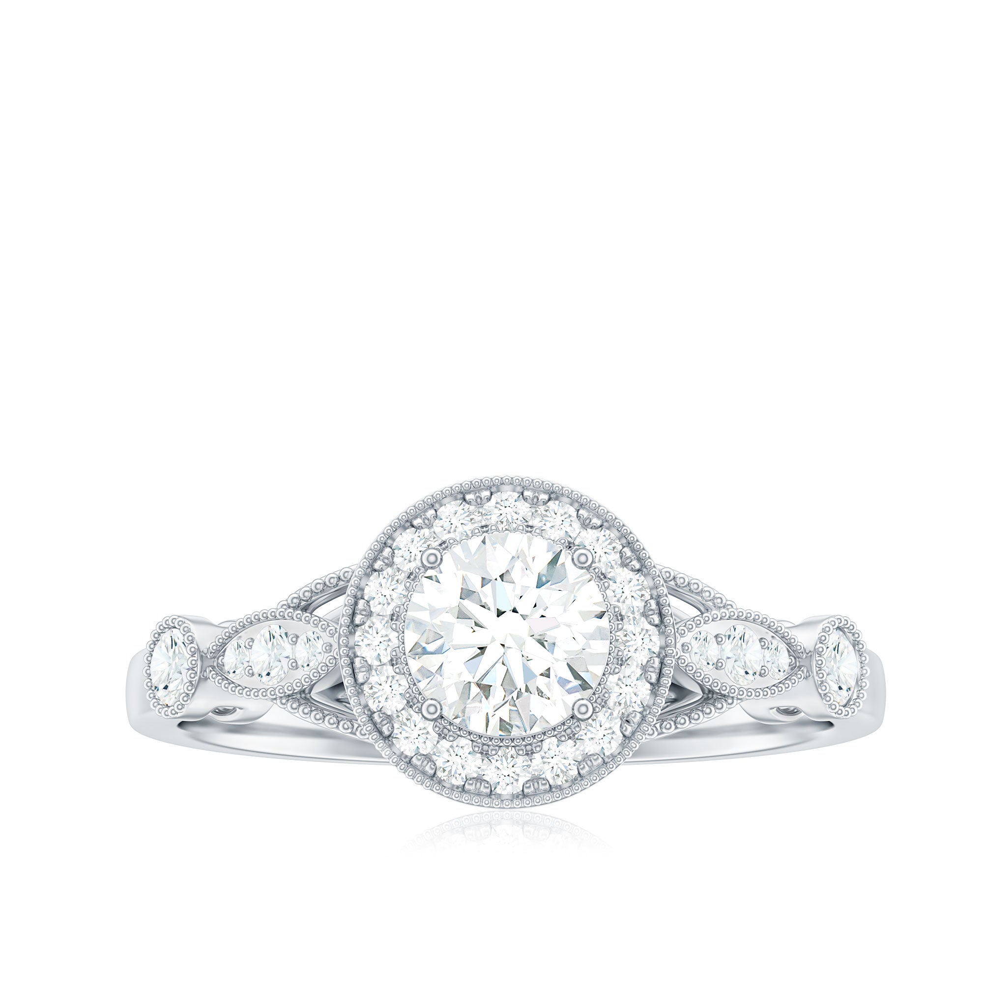 Certified 5 MM Lab Grown Diamond Halo Engagement Ring With Side Stones