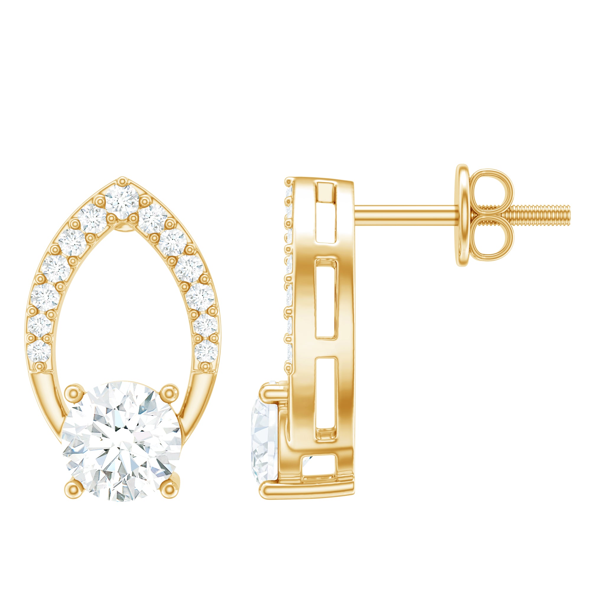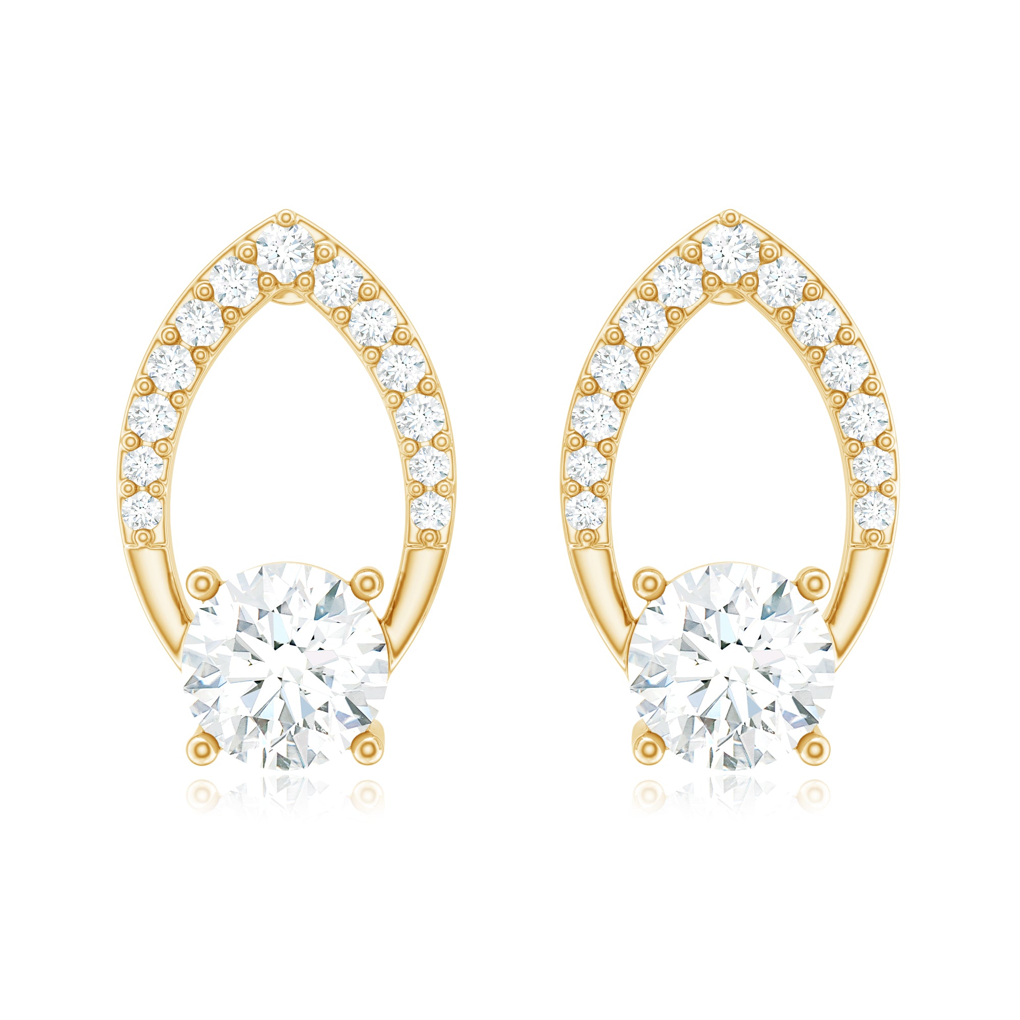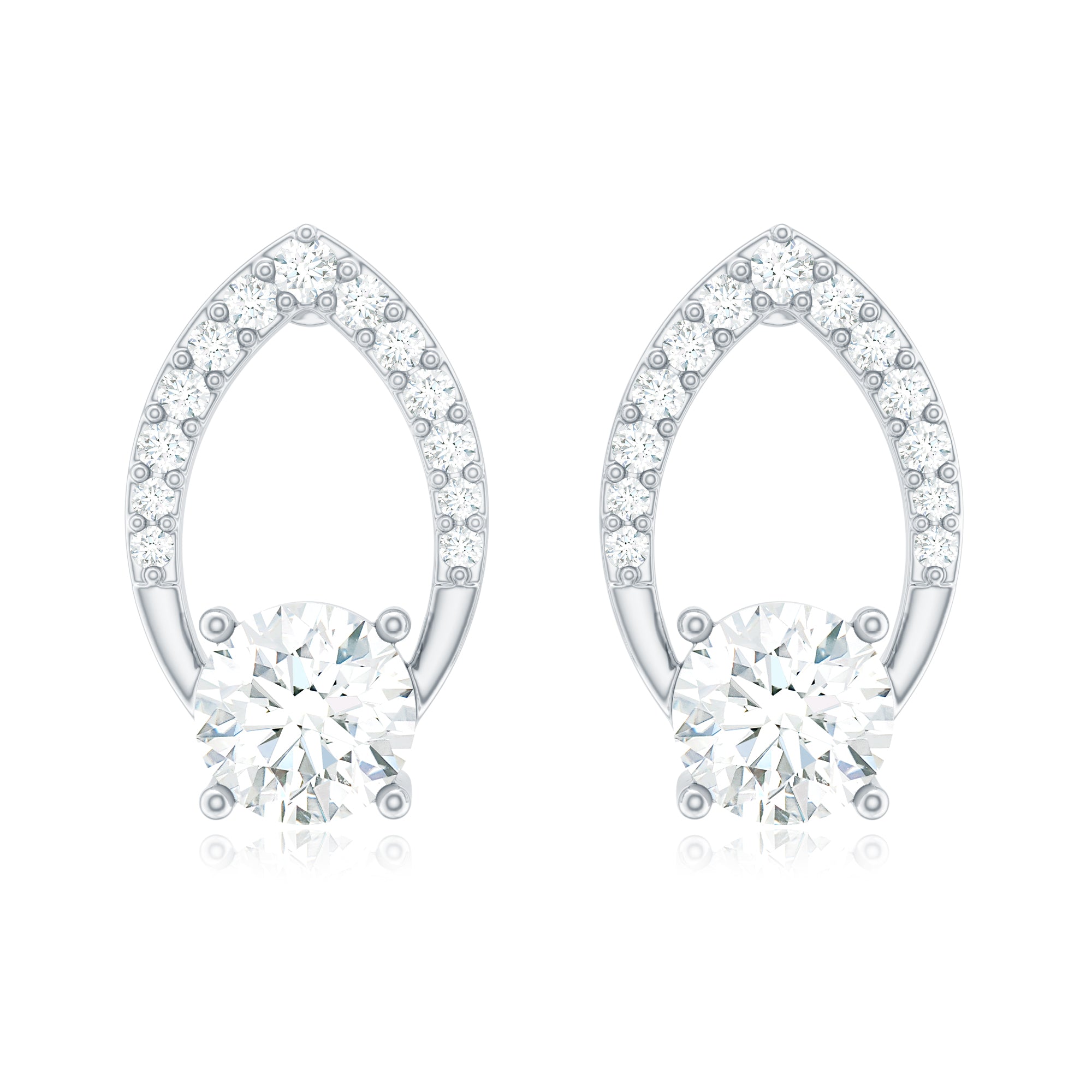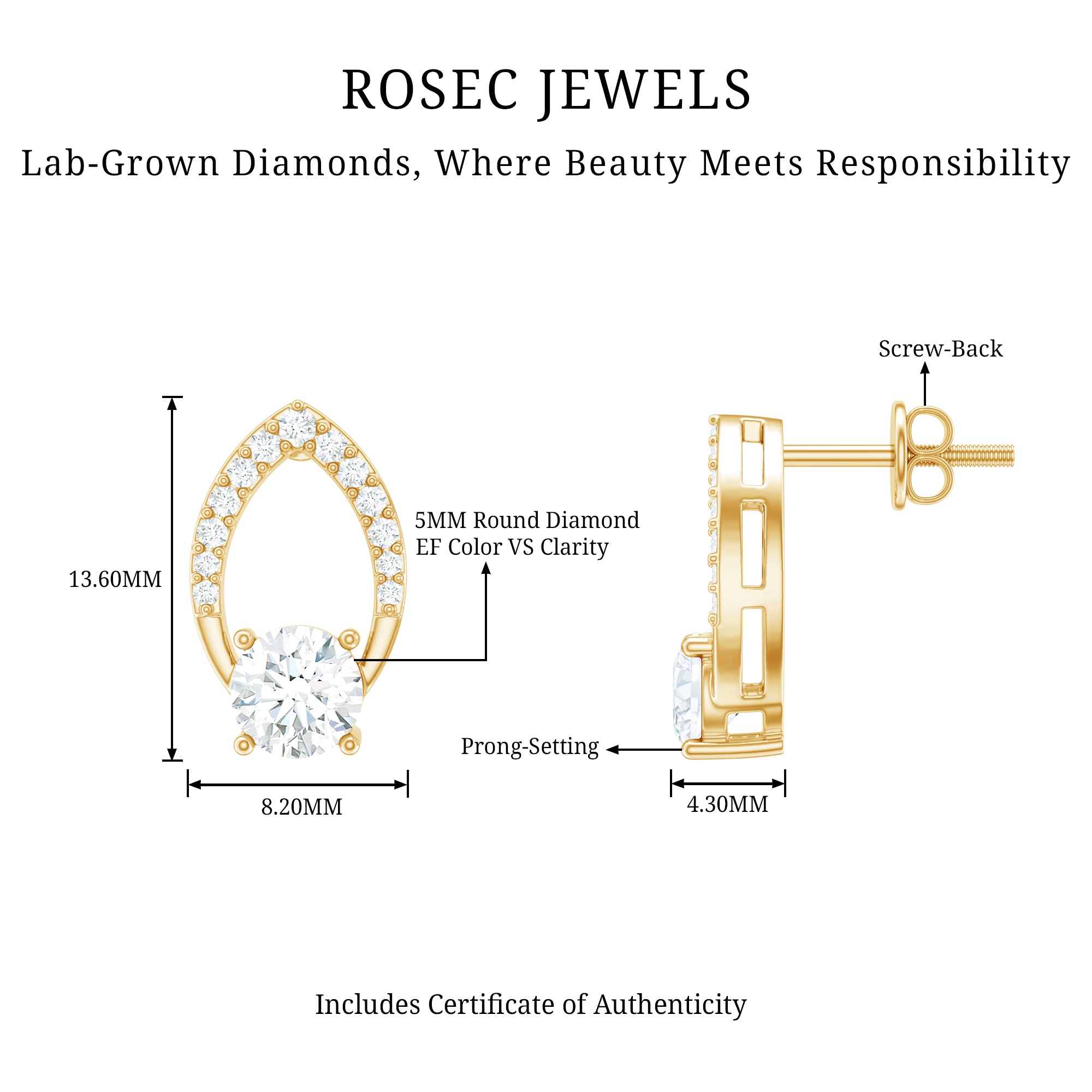 Dazzling and timeless - Rosec Jewels Diamond Stud Earrings are pure beauty. Features a 5 MM round shaped diamond (unnatural) set in prong setting over a petal shape open frame studded with dainty gemstones, adding a brilliance and making these Leaf Earrings a statement piece. The Diamond Earrings come with screw-back closure, which makes them easy to wear and keeps them secure, so she doesnt have to worry about them falling off. These Flower Petal Earrings are handcrafted with ethically sourced, eco-friendly lab grown diamonds, its a thoughtful and budget-friendly choice for an Anniversary gift or any meaningful occasion.