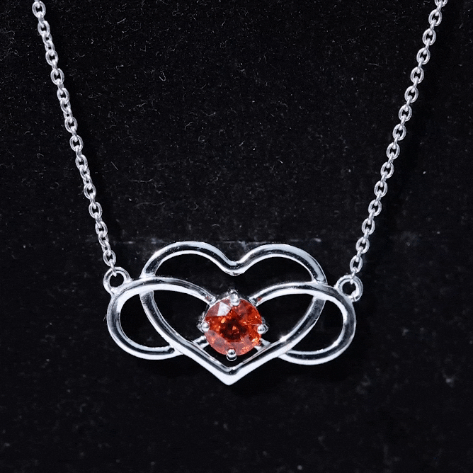 This stunning Heart and Infinity Necklace is all about love that never ends. Designed with a graceful fusion of the intertwined infinity loop and a heart shape, this Orange Sapphire Necklace beautifully represents an unbreakable bond. The smooth metal curves are complimented by a single 5 MM round cut Orange Sapphire of AAA quality set in prong setting in the center, adding a pop of color to the overall design. This Forever Necklace exudes sophistication and comes packaged in a premium storage box, making it ideal for gifting on special occasions like anniversaries, birthdays, Mothers Day, or Valentines Day. A gift as unique and radiant as your loved one.