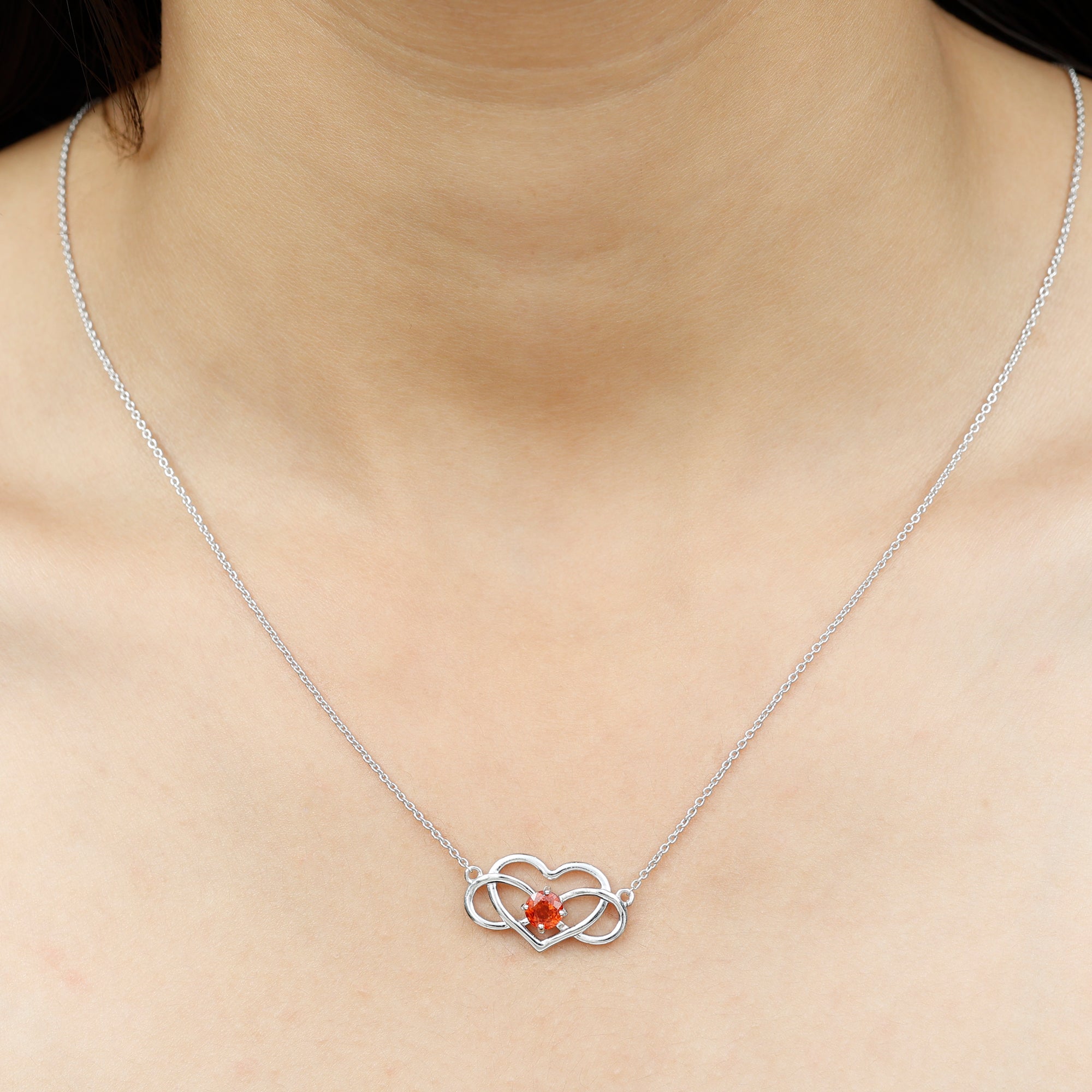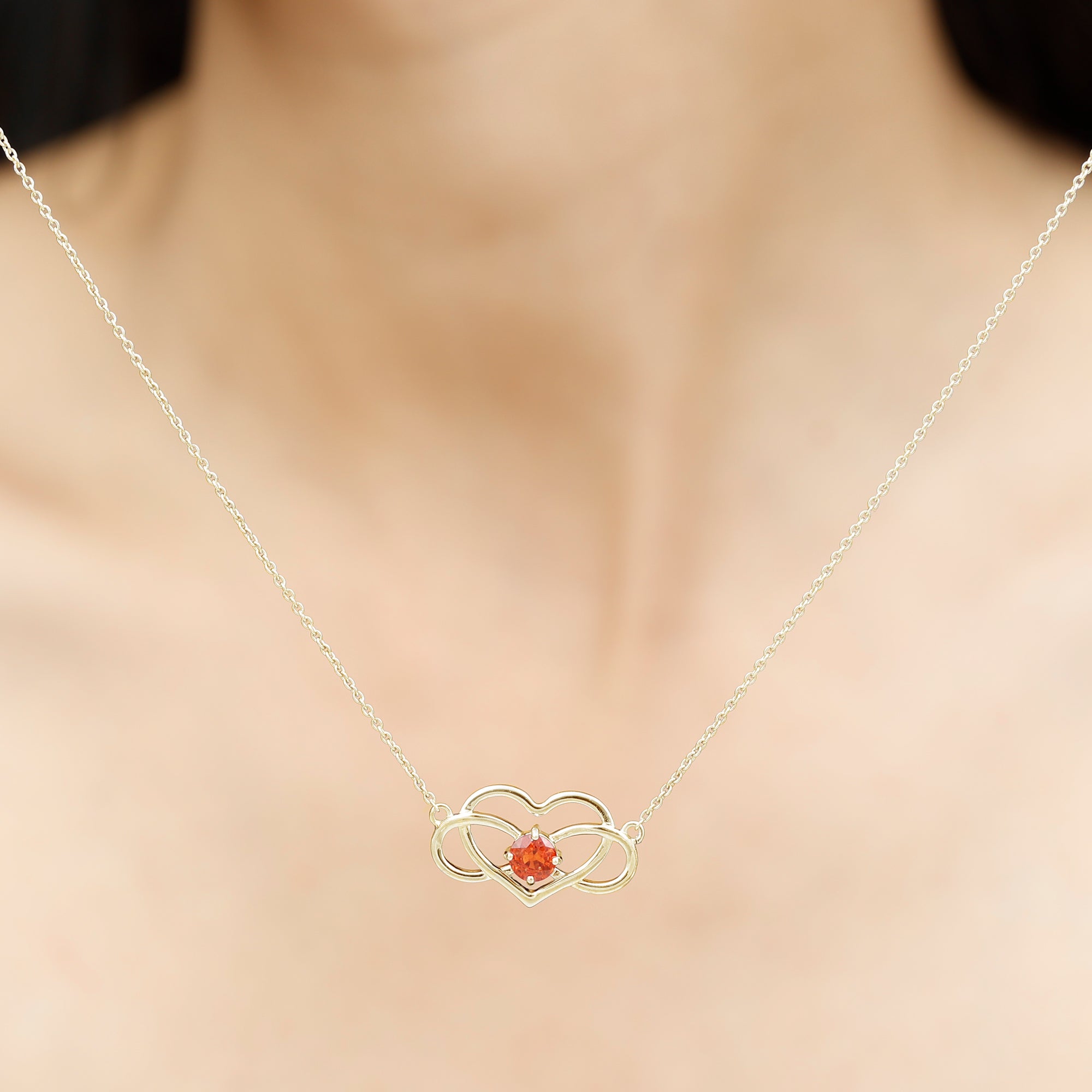 Certified 5 MM Round Cut Orange Sapphire Infinity Heart Necklace