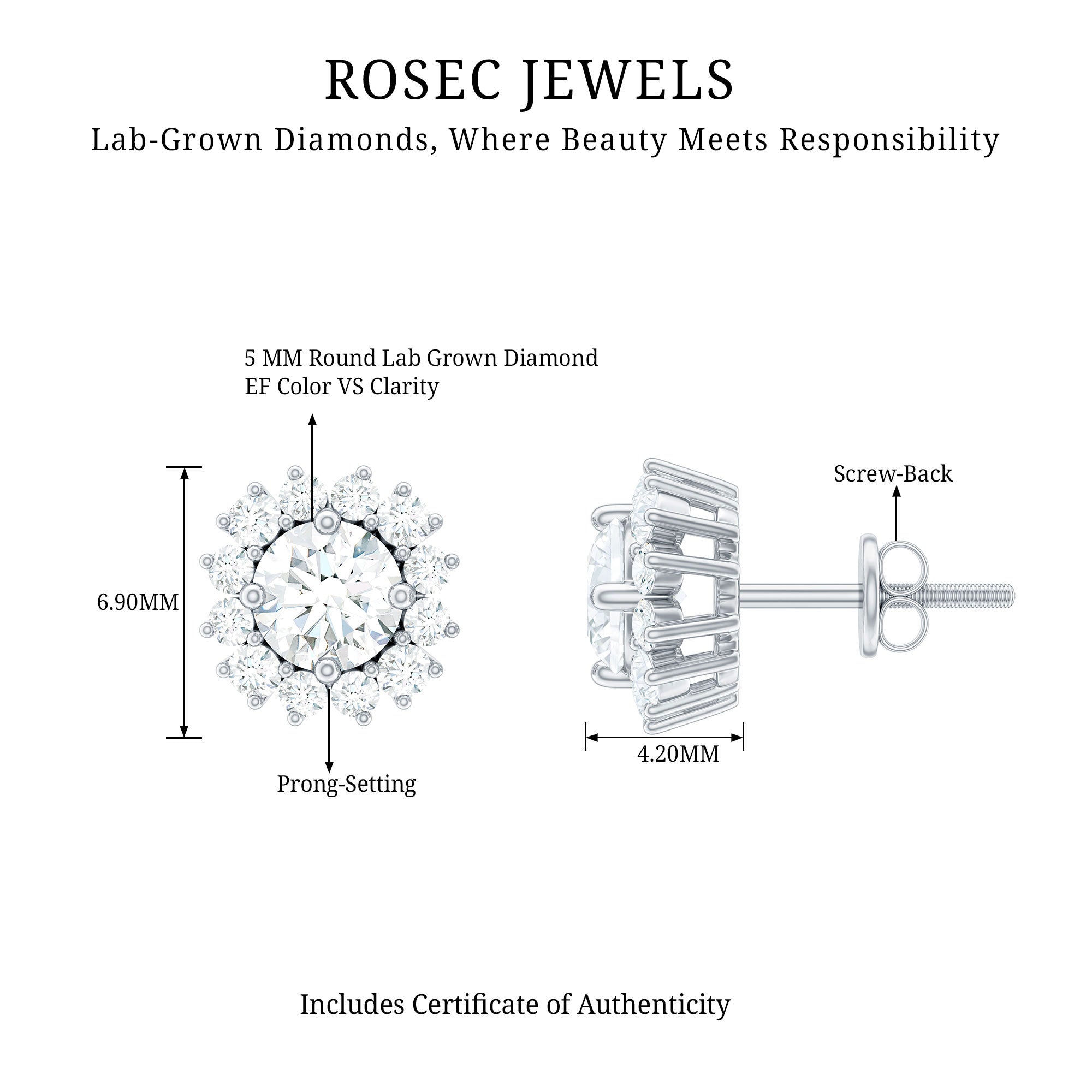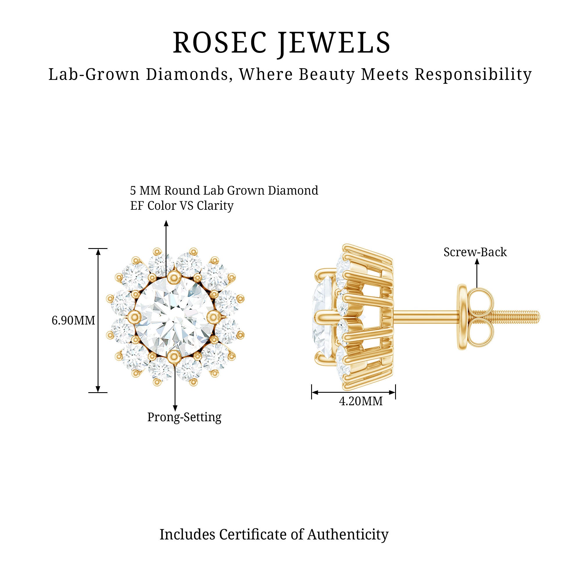 Certified 5 MM Round Lab Grown Diamond Halo Stud Earrings