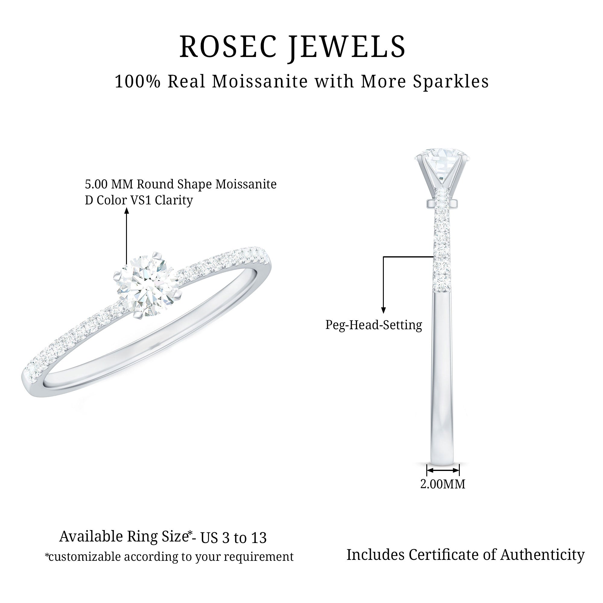 Certified 5 MM Round Moissanite Solitaire Promise Ring