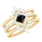 Certified 5mm Princess Cut Black Onyx Wedding Rings Set with Moissanite Band