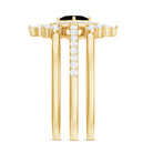 Elevate your beauty and shine like a fashion icon on your special day with this stunning Black Onyx Wedding Ring Set, crafted to attract attention and win your heart. This exquisite 3 Piece Bridal Set provides a flawlessly coordinated appearance that emphasizes its timeless elegance. The focal point is a brilliant 5MM princess cut black onyx, securely held in a prong setting and encircled by a halo of smaller round moissanite stones that also embellish the band. This halo enhances the brilliance and draws focus to the center stone, rendering it exceptionally radiant. Accompanying the engagement ring are two sophisticated stackable bands that elevate the Halo Wedding Set from simple and classic to bold and glamorous. These two crown style enhancers showcase round and pear cut moissanite stones arranged in a distinctive pattern, imparting a complete and harmonious appearance to the Halo Bridal Ring Set. Collectively, they elegantly frame the center ring and enrich the overall design. Experience a sense of royalty while wearing this Wedding Trio Set, each ring representing promise, unity, and everlasting love. The rings are designed to complement one another perfectly, offering versatility; you can wear them individually for a more casual, everyday style or stack all three for a striking, statement-making look.