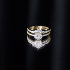 This Lab Grown Diamond Ring Set unveils brilliance which is beautifully accented by an exquisite enhancer that elevates its elegance to the next level. Embellished with 5X7 MM Oval Shaped Lab Grown Diamond in Prong Setting in East West style. Adorning the main stone are the side stones that decorate the shank with round petite Lab Grown Diamond, capturing the light in a breathtaking dance of sparkle and sophistication, symbolizing the endless nature of your devotion. The notched wedding band of this ring set is beautifully decorated Lab Grown Diamond complements the beauty. This enchanting Engagement Ring Set has a cherished lifetime memory. Celebrate your journey together with a Bridal Ring Set that shines as brightly as the love you share.