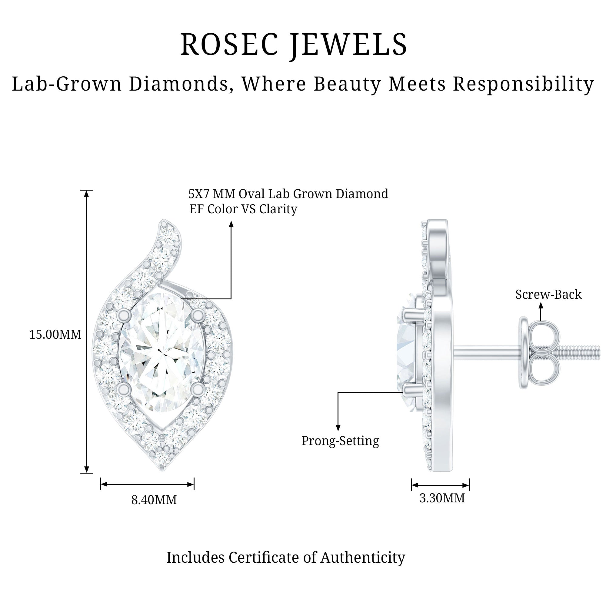 Certified 5X7 MM Oval Lab Grown Diamond Stud Earrings For Women