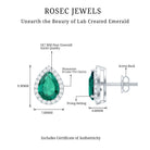 Certified 5X7mm Lab Grown Emerald Teardrop Halo Earrings in Silver