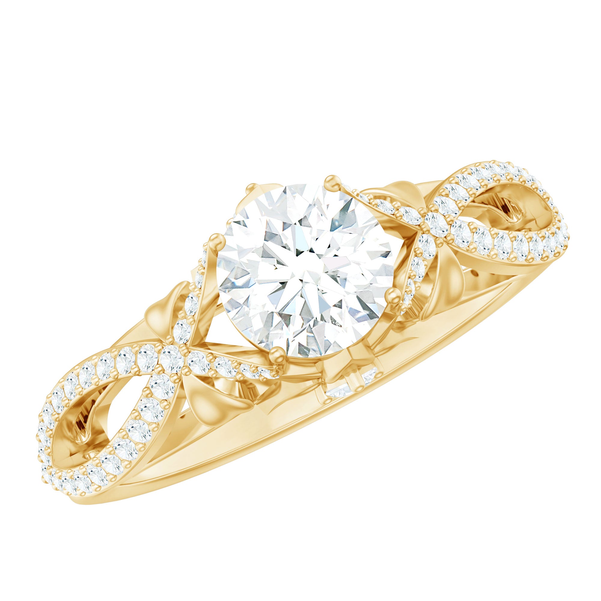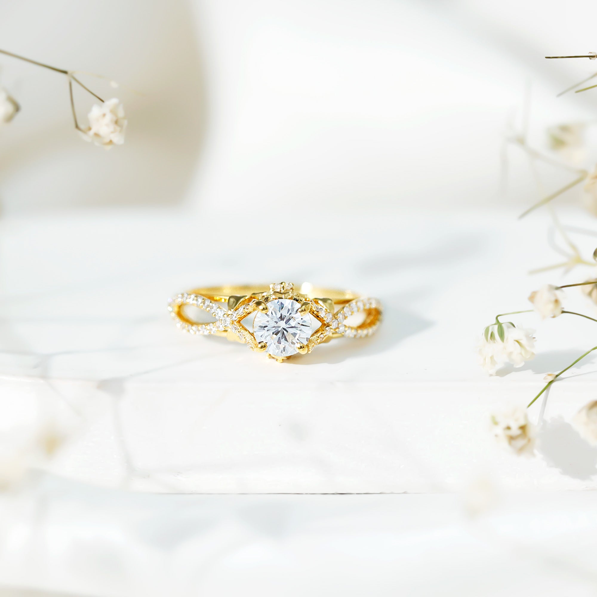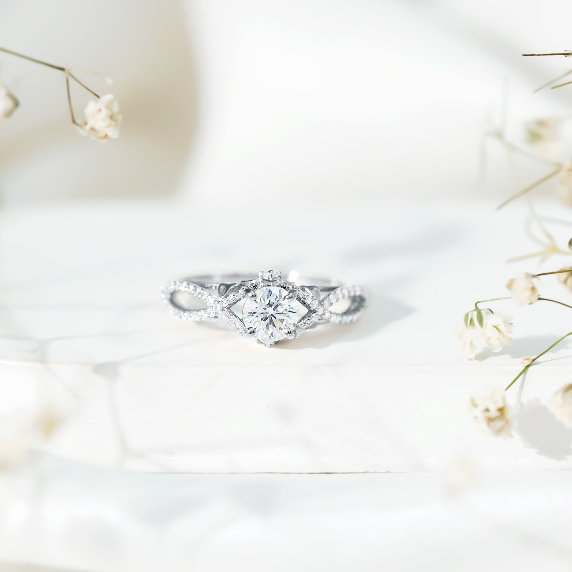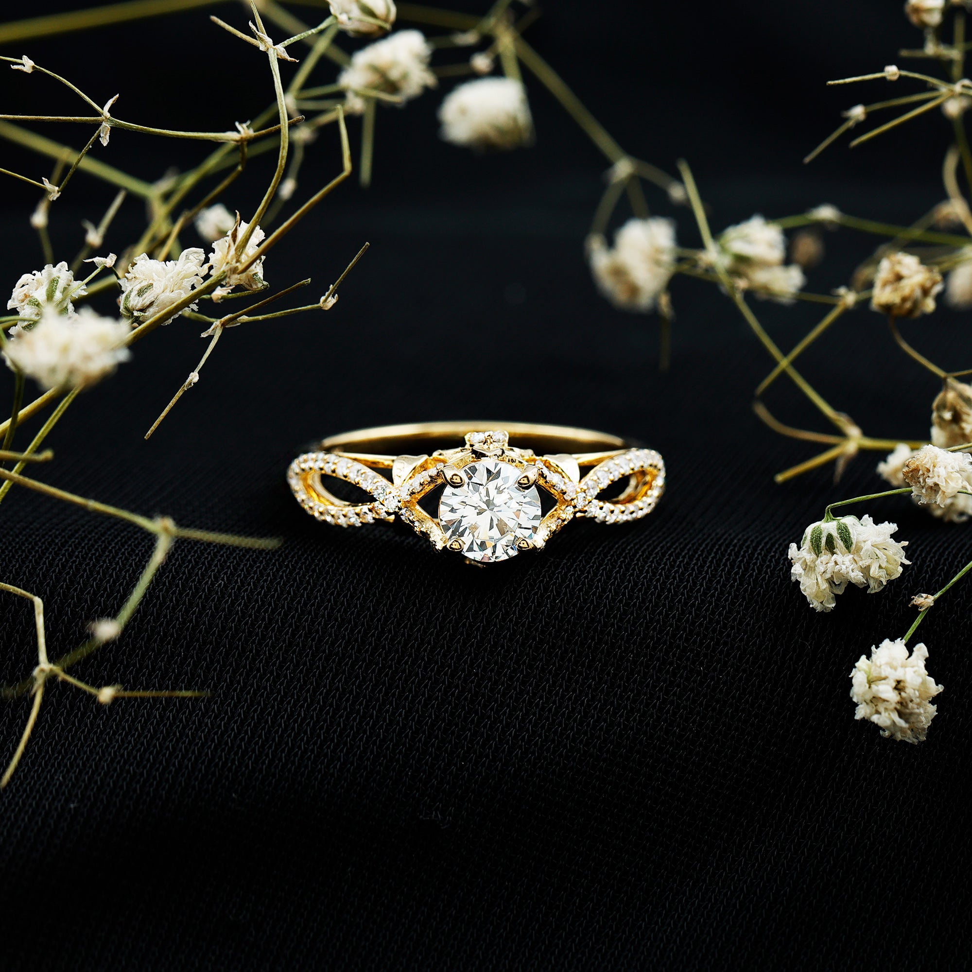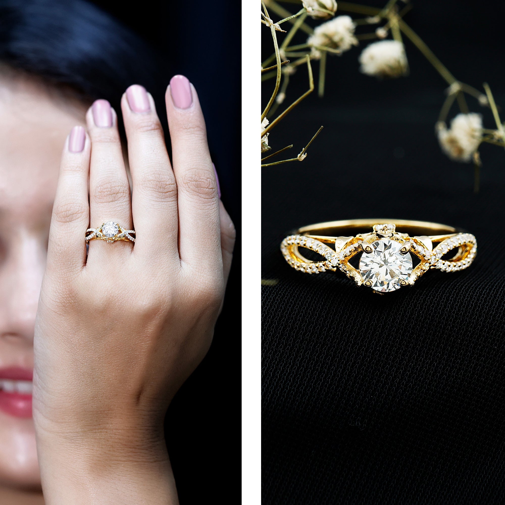 This Lab Grown Diamond Ring is a perfect mix of contemporary design and timeless romance, that makes it an absolute showstopper. Featuring 6 MM Round Shaped Lab Grown Diamond in Prong Setting with a unique crossover design studded with lab diamond gemstones sparkling from every angle. This Diamond Crossover Ring has a true beauty that symbolizes your intertwined lives by adding unique elegance. Crafted with meticulous attention to detail, this Diamond Designer Ring embraces an extraordinary design with its brilliance and beauty that shines by adding grace to your unique flair. Flaunt the extravagant style of this EF-VS Quality Lab Diamond that matches your charisma beautifully by saying yes to forever.