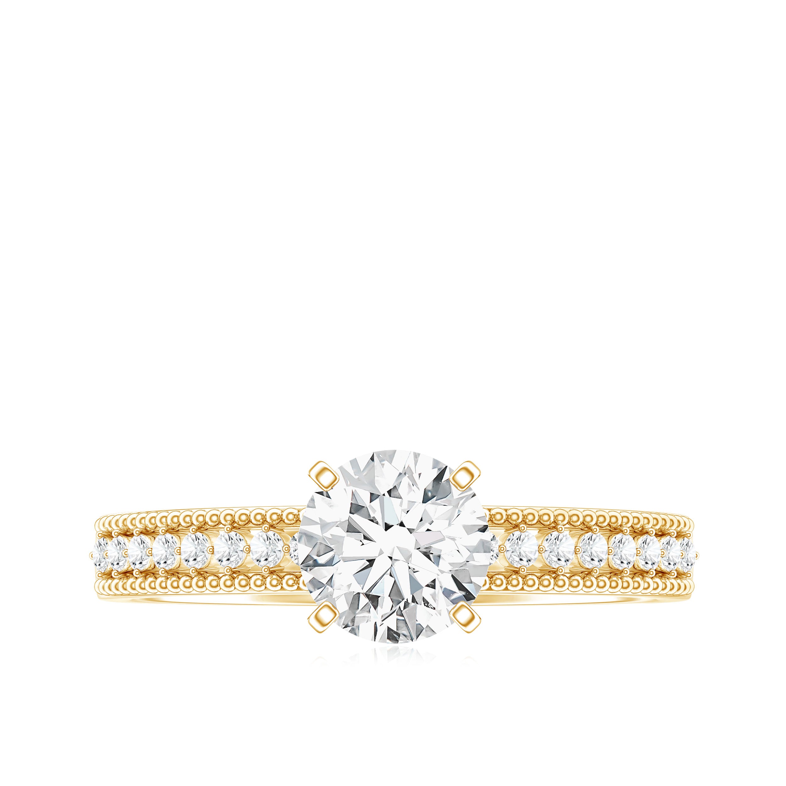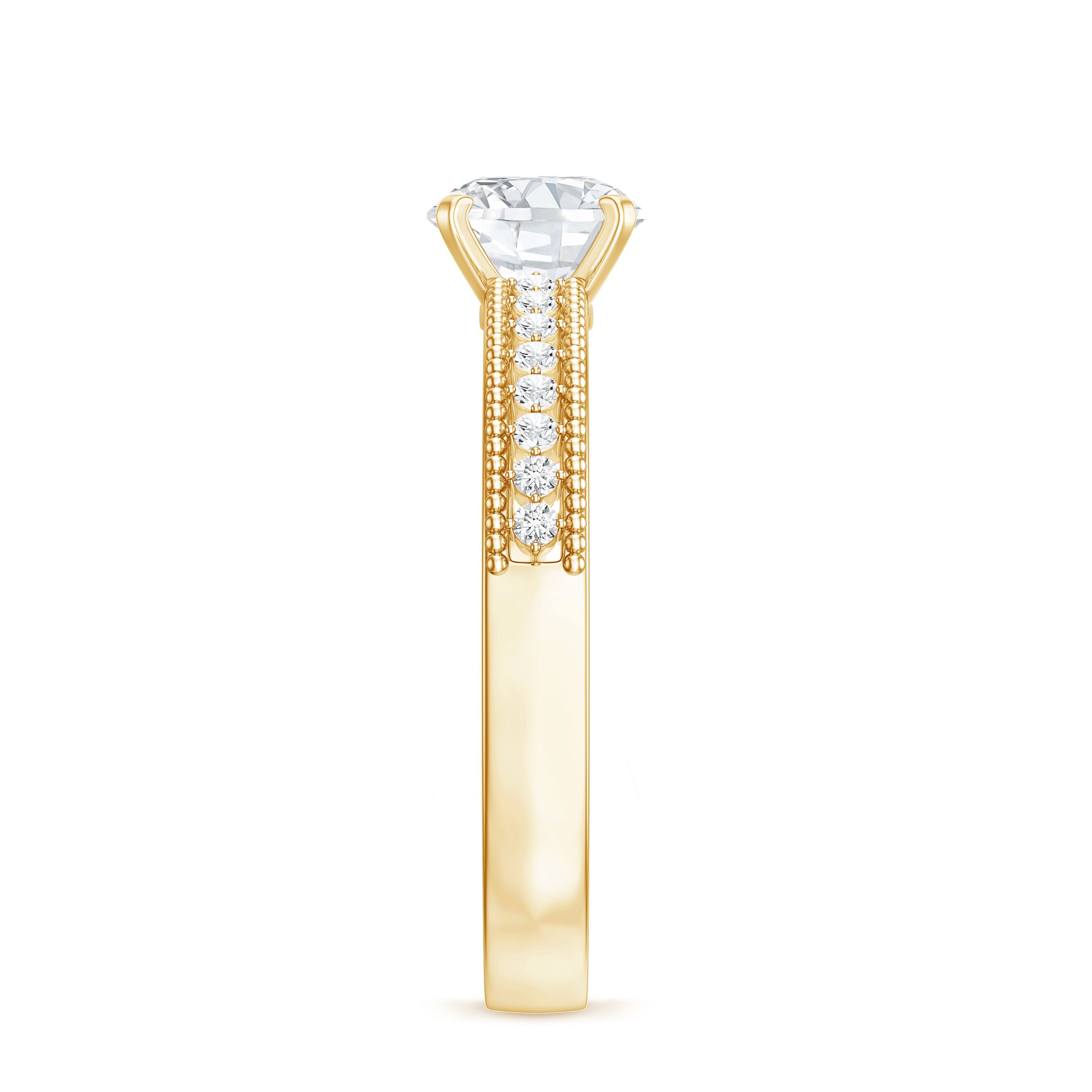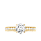 This elegant Solitaire Engagement Ring showcases a dazzling 6 MM round shaped diamond in secure prong setting. The band of this man made Diamond Ring is adorned with intricate beaded detailing and a row of sparkling accents, adding a touch of vintage charm to its modern design. Crafted with care, the lab grown diamond is ethically sourced and eco-friendly, making it a meaningful choice for couples who value sustainability. Its timeless design ensures it will be cherished for a lifetime, while the included certificate of authenticity assures its quality and value. Make your proposal unforgettable with a Round Cut Diamond Engagement Ring that is as special as your love.
