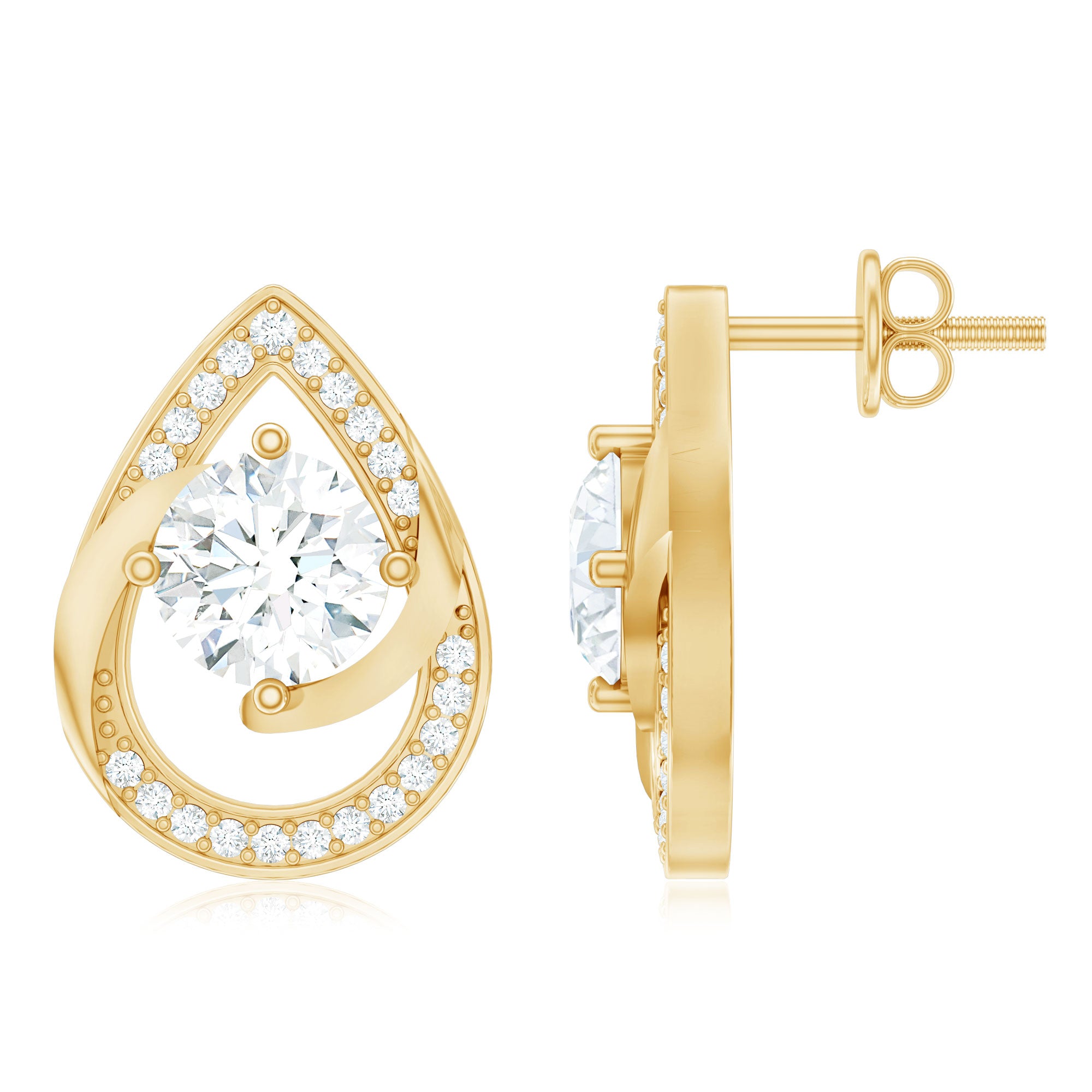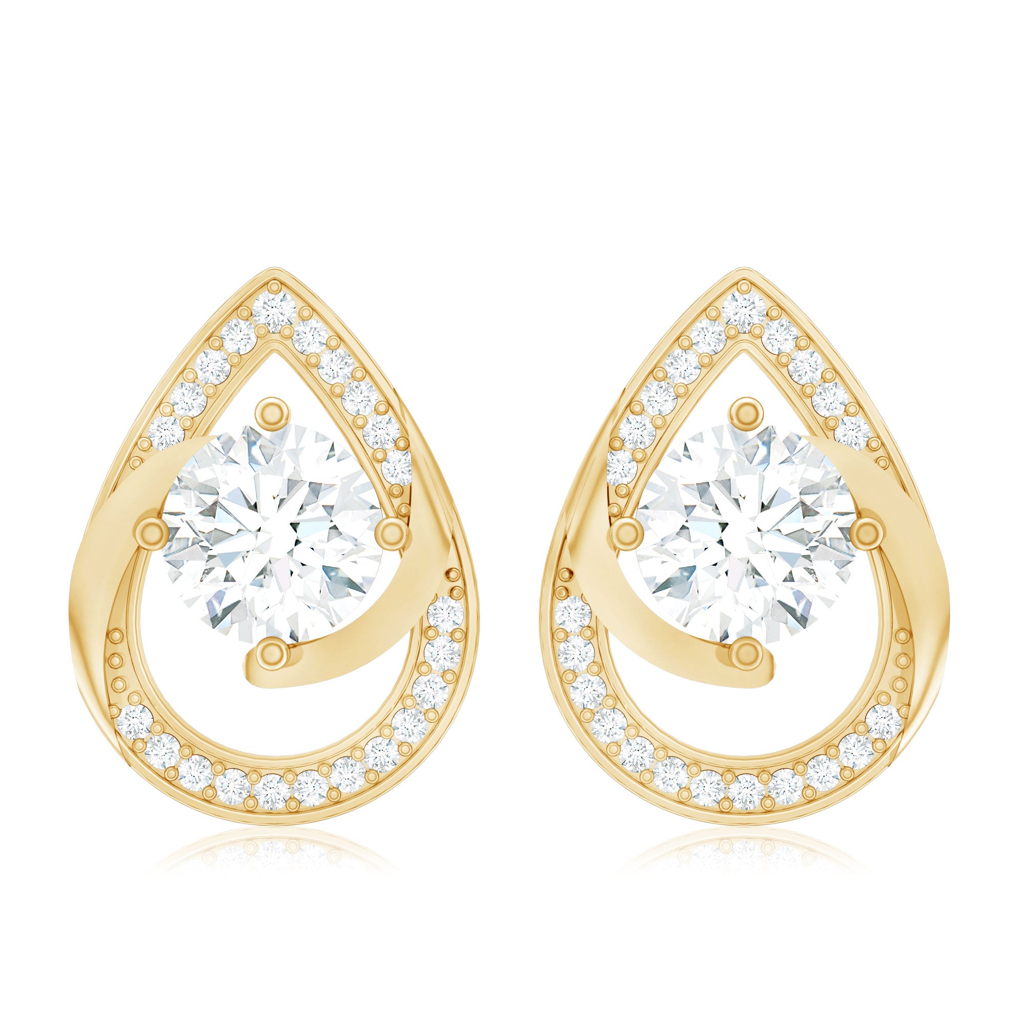 Experience timeless beauty with these exquisite Teardrop Earrings. Meticulously handcrafted, they feature a stunning 6 MM Round Shape Diamond set in a secure prong setting as the centerpiece. The elegant Teardrop design, enhanced by sparkling round cut diamond gemstones, adds a layer of sophistication, while the Screw Back Closure guarantees a snug fit. Perfect for any occasion, these Lab Grown Diamond Earrings are sure to draw attention. Gifting these Diamond Stud Earrings to the special woman in your life is a wonderful way to show your affection. With their beautiful and classy design, these Pear Shaped Earrings make a bold statement about your style, and if you were born in April, these studs are an ideal match for your personality.
