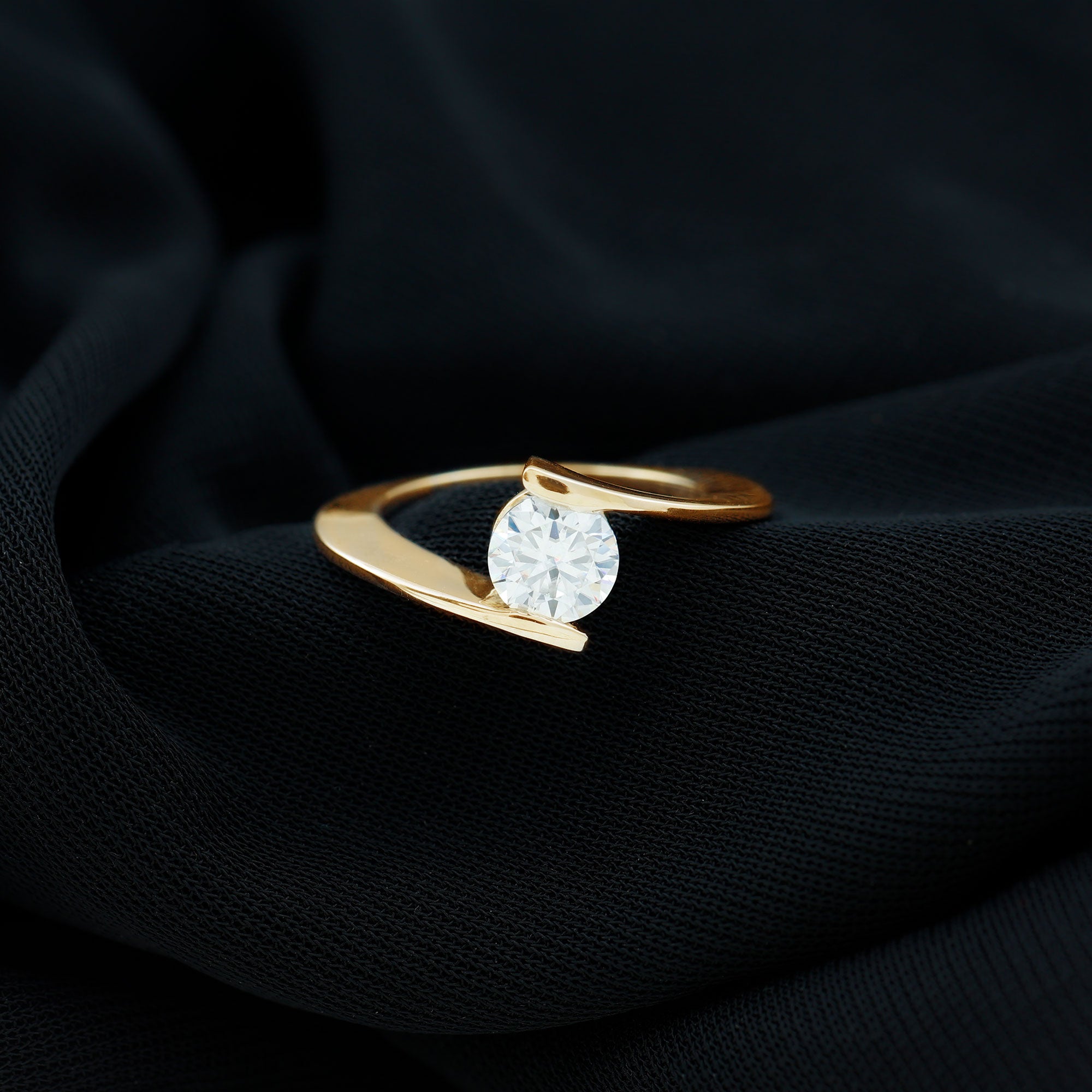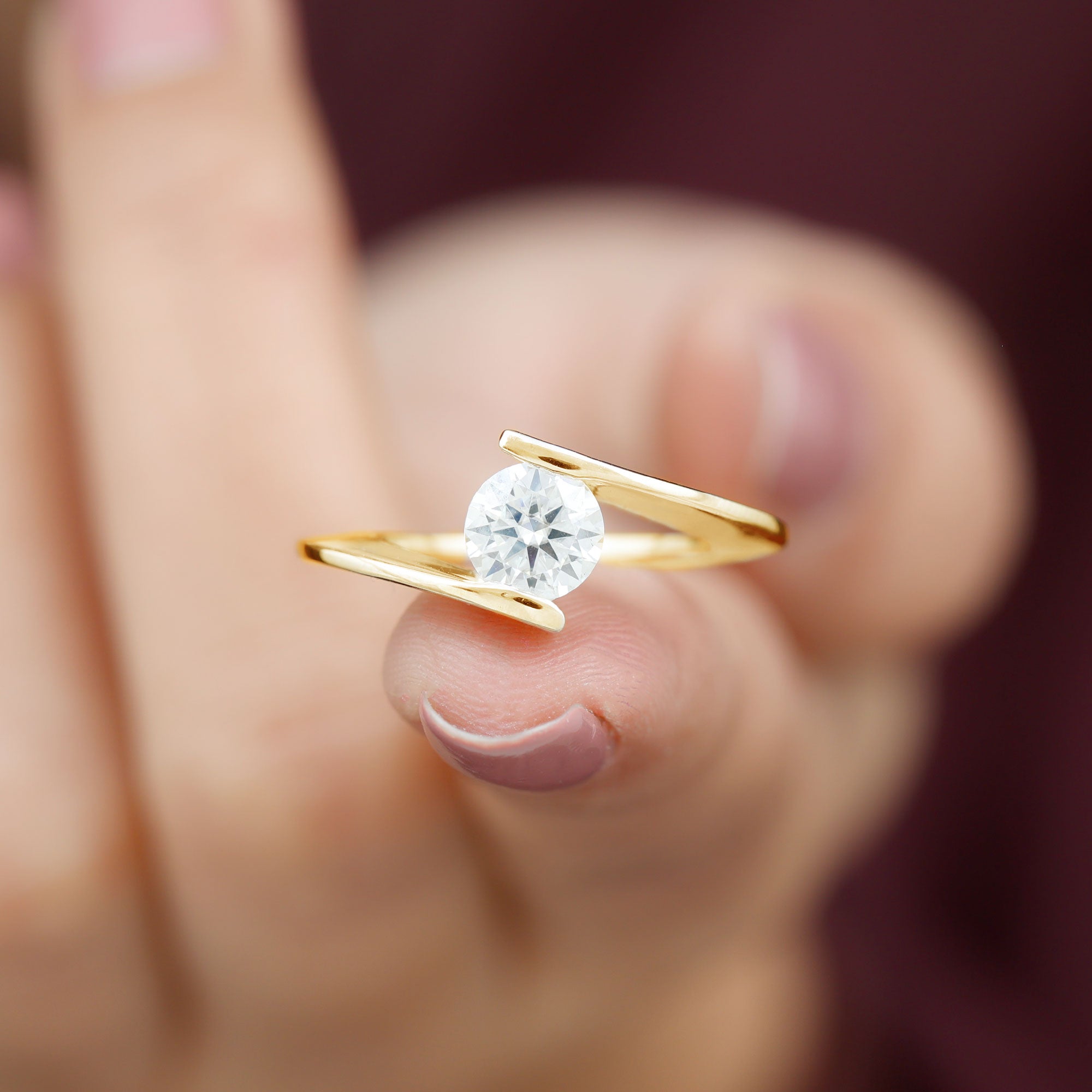 This delicate Simple Promise Ring is a stunning fusion of timeless romance and growing commitment. Define your deepening love with this Solitaire Diamond Ring that has an enduring simple design, elegantly cradled by a unique bypass design that symbolizes the beautiful journey of two souls coming together. This sweet promise ring is adorned with 6 MM Round Shaped Lab Grown Diamond in Tension Mount Setting as Solitaire. Showcasing the clarity and brilliant cut, of EF-VS Quality Lab Grown Diamond, it stands out for its striking beauty ideal for someone who wants a modern love story. Celebrate your commitment with this Lab Grown Diamond Ring with its elegant design that draws attention making it look more subtle and radiating a captivating glow.